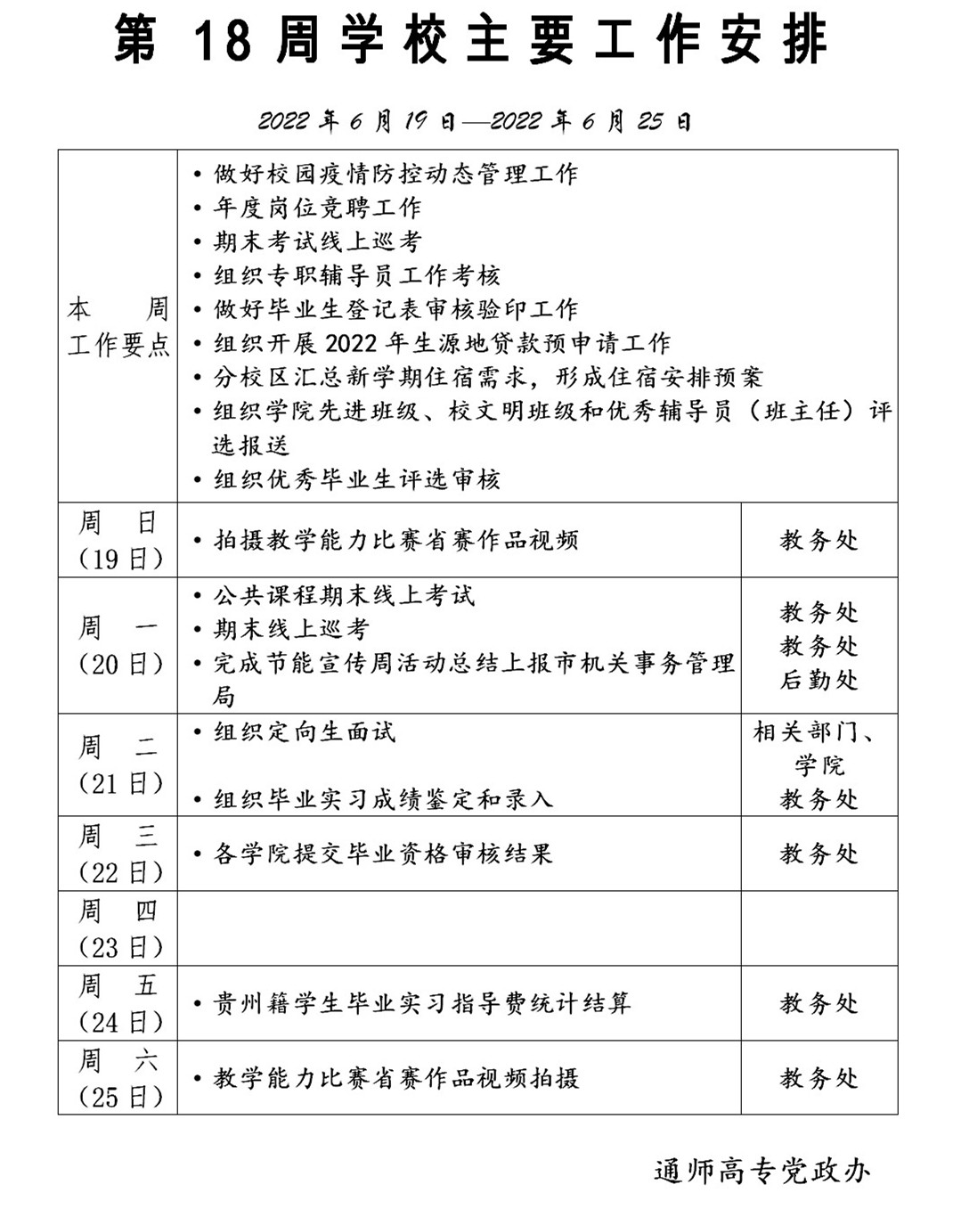2021-2022学年第二学期第18周多盈体育(中国)主要工作安排