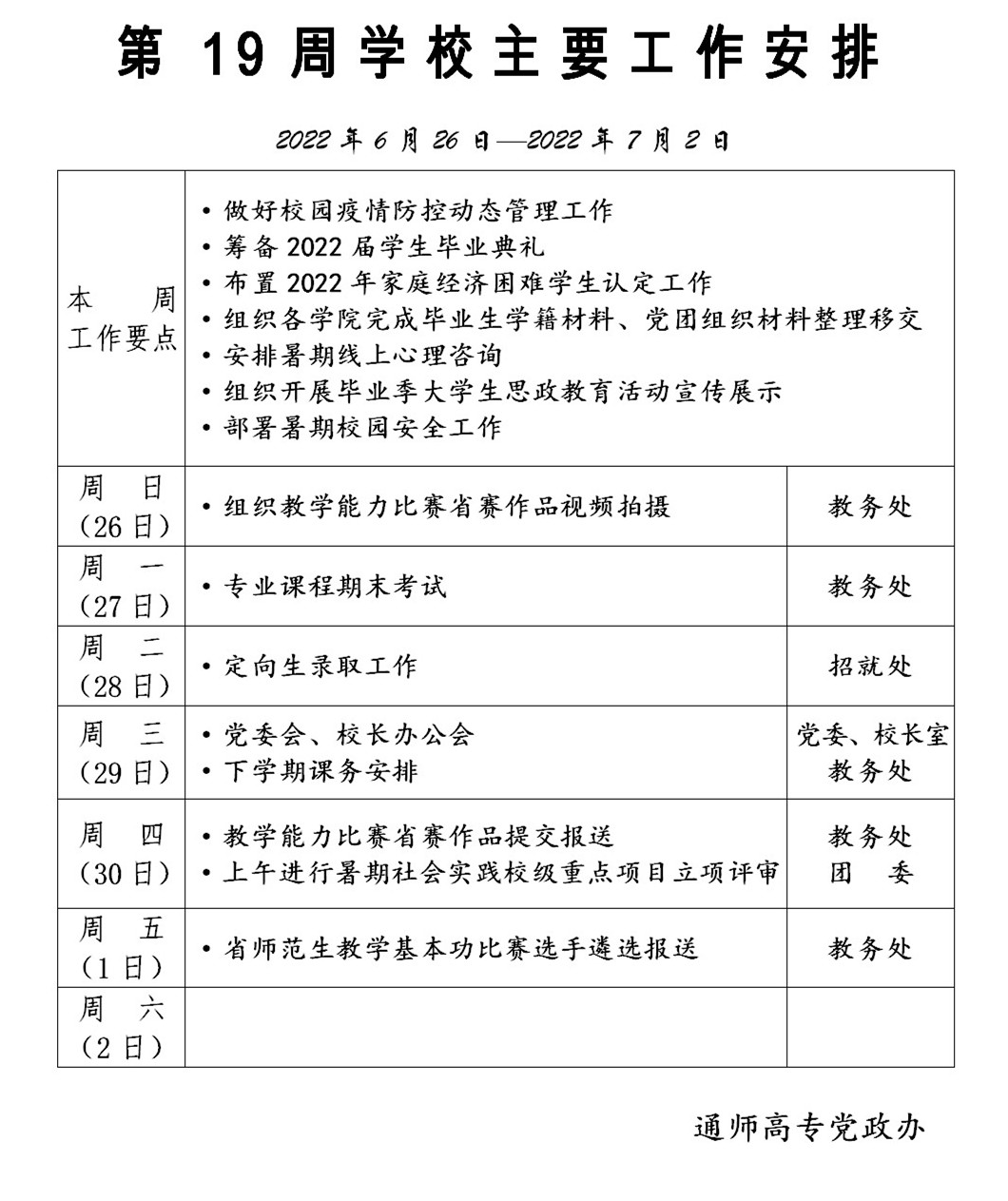 2021-2022学年第二学期第19周多盈体育(中国)主要工作安排