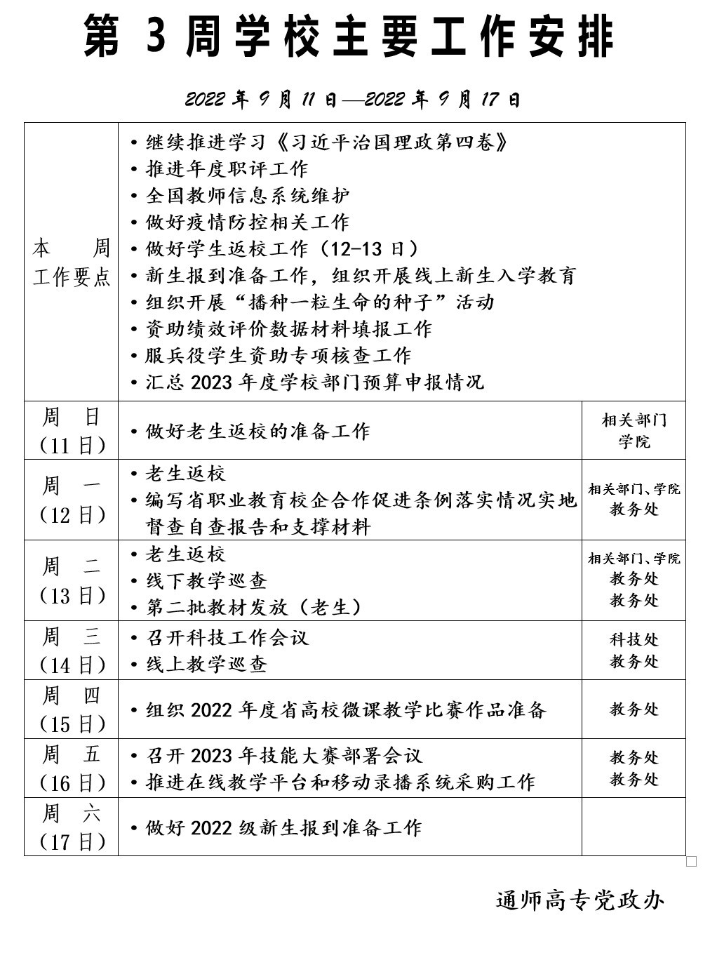 2022-2023学年第一学期第3周多盈体育(中国)主要工作安排
