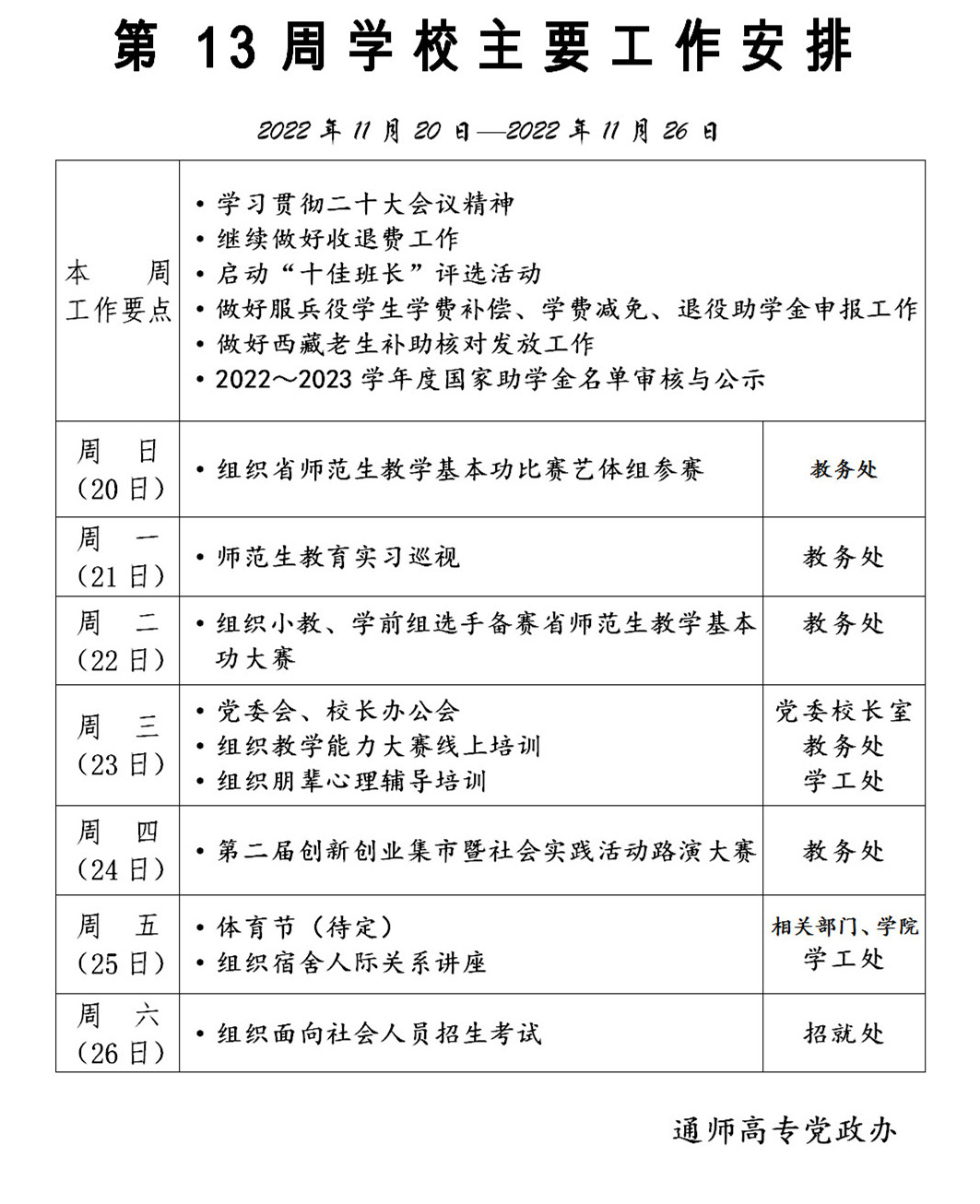 2022-2023学年第一学期第13周多盈体育(中国)主要工作安排