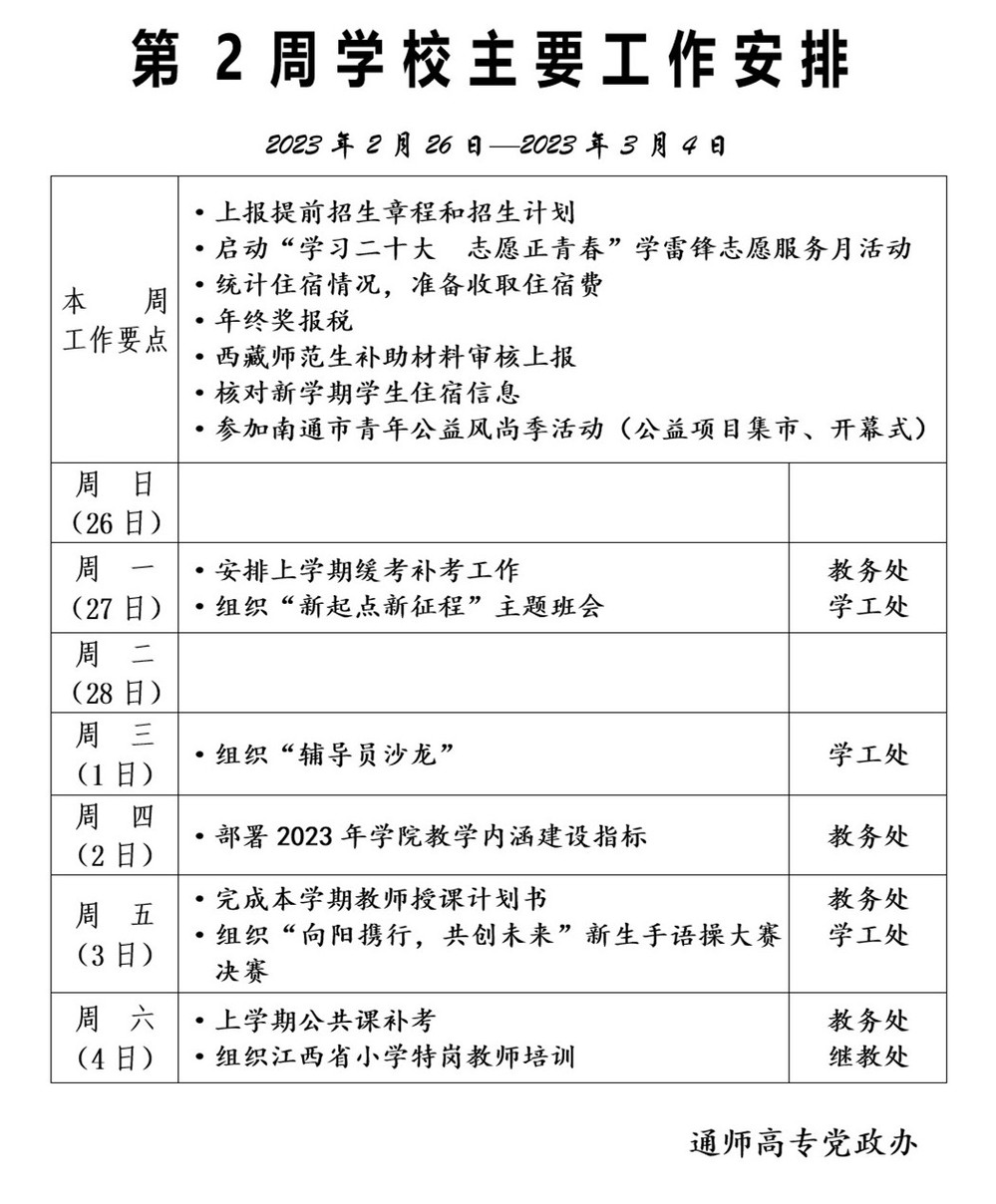 2022-2023学年第二学期第2周多盈体育(中国)主要工作安排
