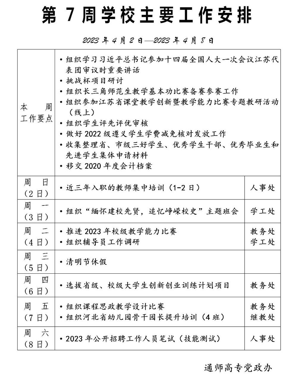 2022-2023学年第二学期第7周多盈体育(中国)主要工作安排