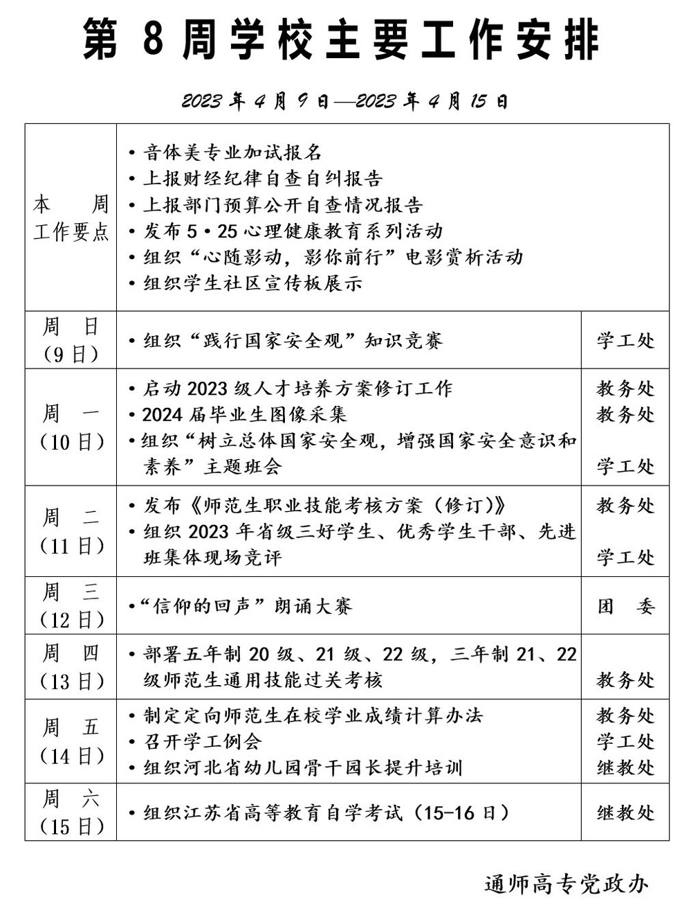 2022-2023学年第二学期第8周多盈体育(中国)主要工作安排