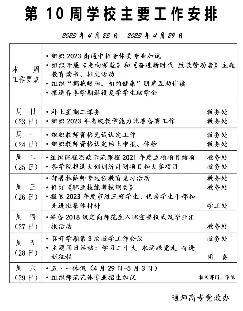 2022-2023学年第二学期第10周多盈体育(中国)主要工作安排