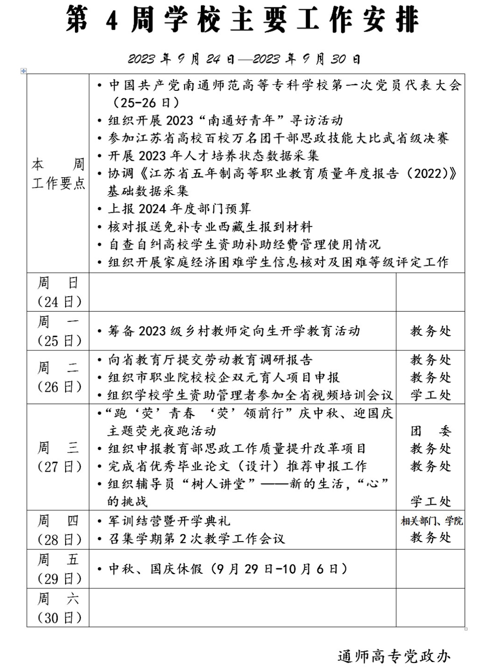 2023-2024学年第一学期第4周多盈体育(中国)主要工作安排