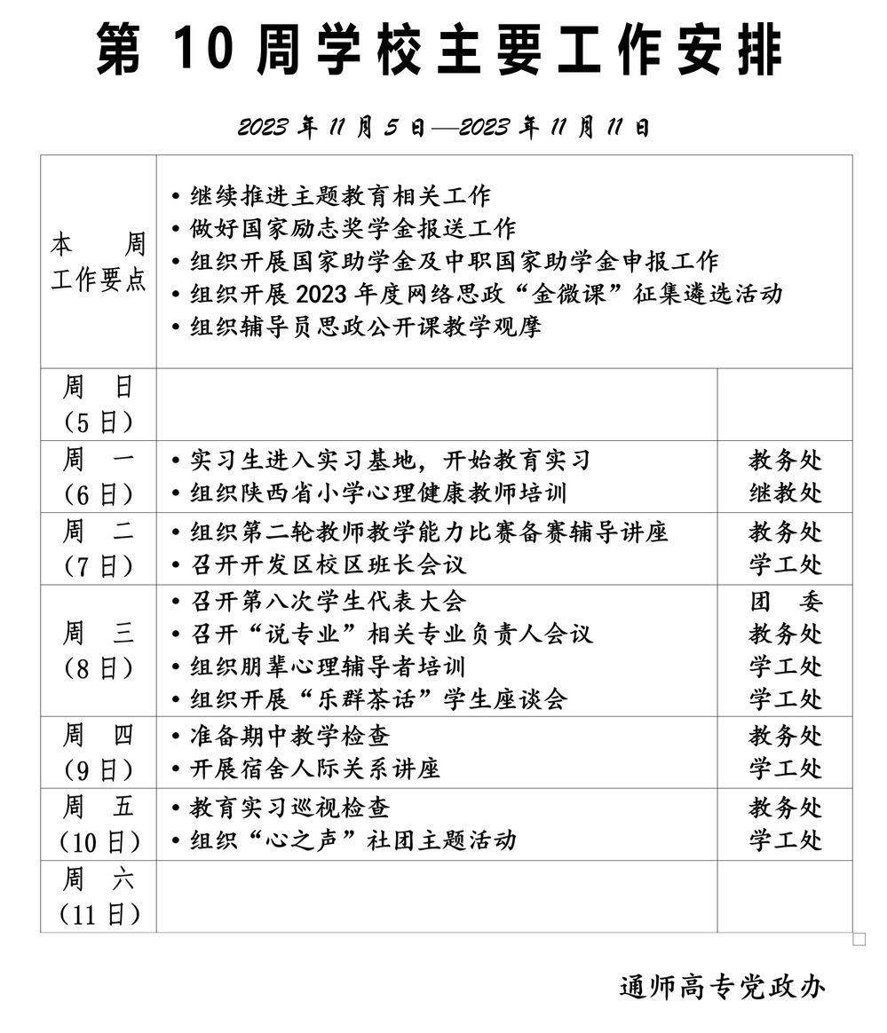 2023-2024学年第一学期第10周多盈体育(中国)主要工作安排