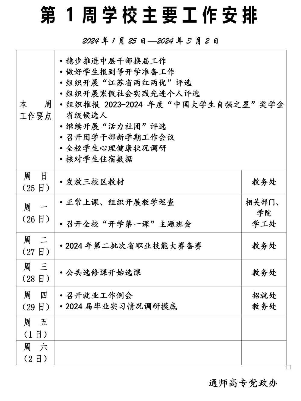 2023-2024学年第二学期第1周多盈体育(中国)主要工作安排