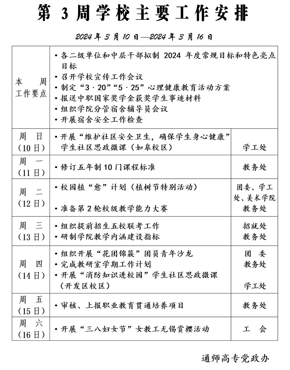 2023-2024学年第二学期第3周多盈体育(中国)主要工作安排