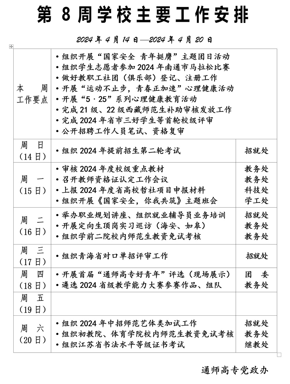 2023-2024学年第二学期第8周多盈体育(中国)主要工作安排