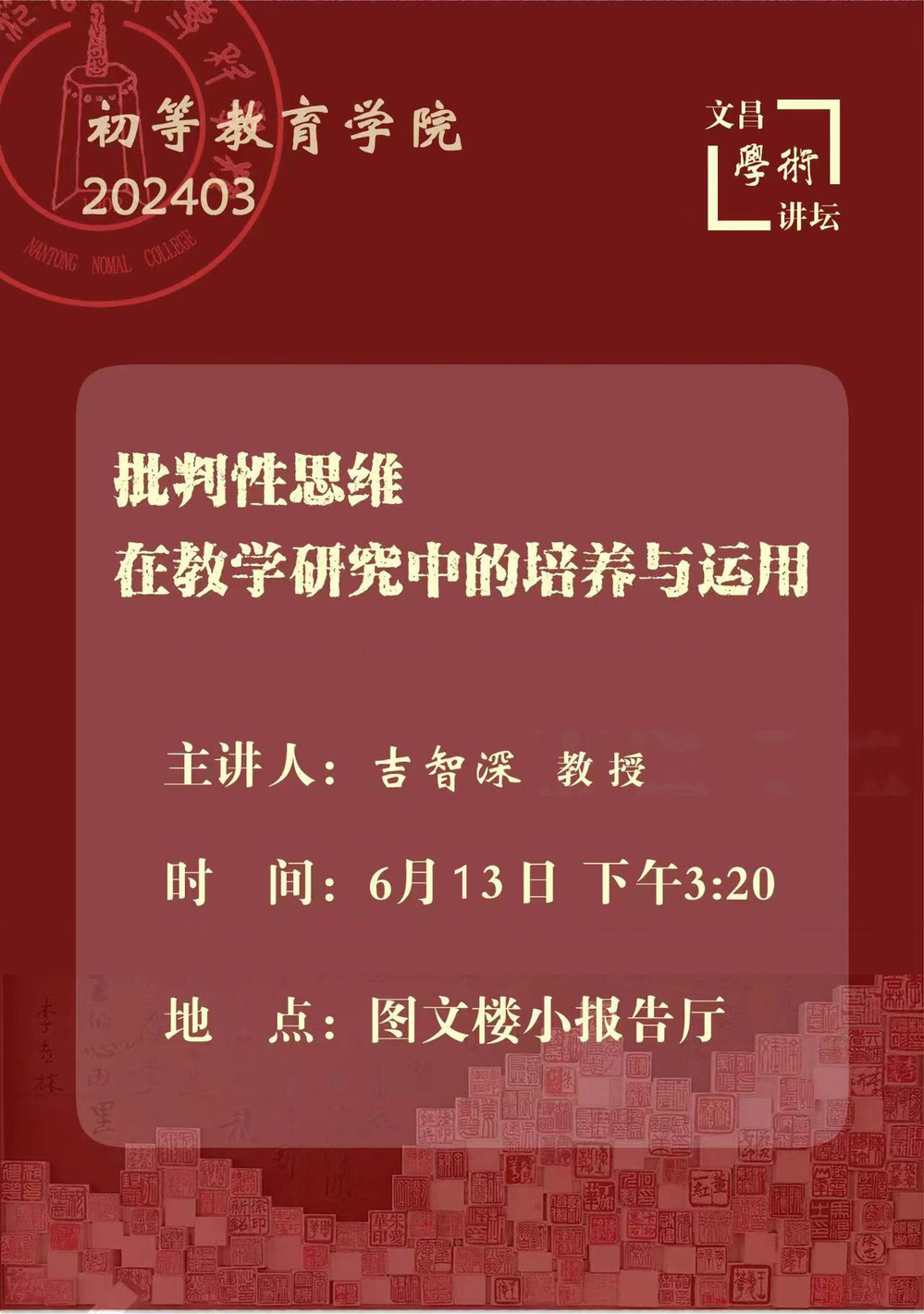 初等教育学院文昌学术讲坛——批判性思维在教学研究中的培养和运用