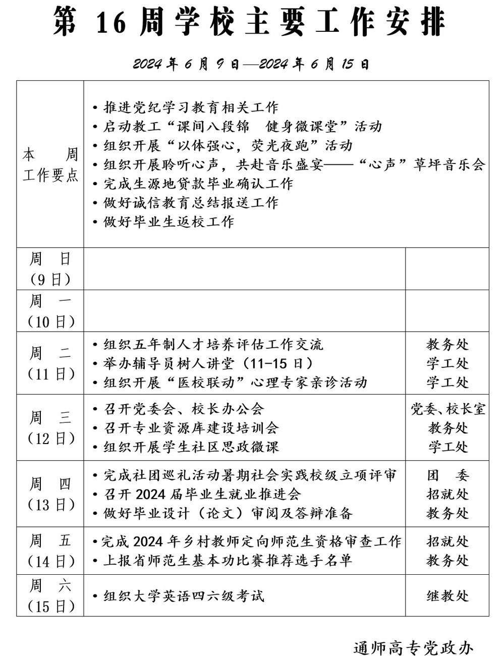 2023-2024学年第二学期第16周多盈体育(中国)主要工作安排