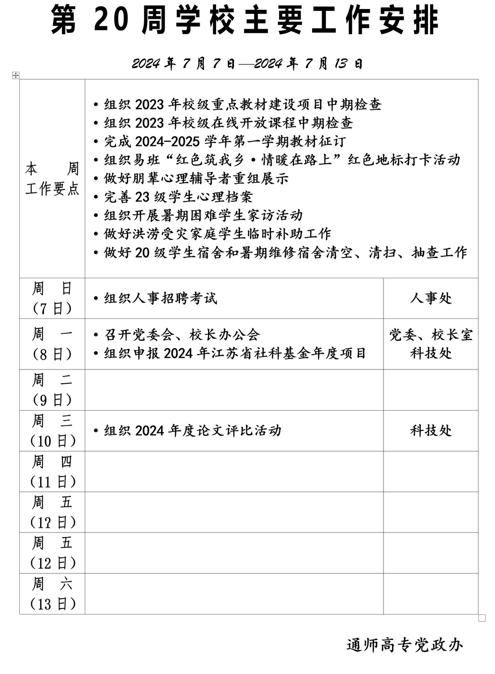 2023-2024学年第二学期第20周多盈体育(中国)主要工作安排
