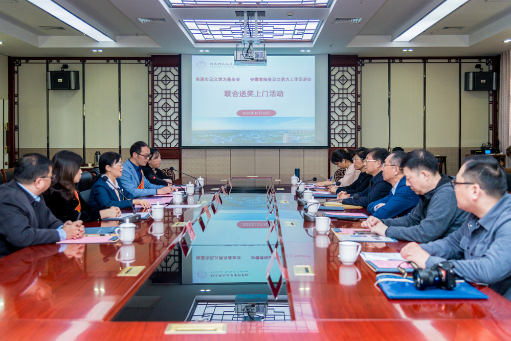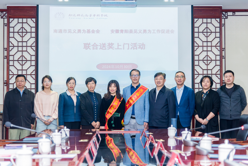 为进一步弘扬见义勇为精神,传播社会正能量,10月30日,安徽省青阳县见义勇为工作促进会理事长陶翠霞,秘书长高娟在南通市见义勇为基金会领导的陪同下,来校慰问在安徽勇救落水人员的顾新辉、许冬云同志。