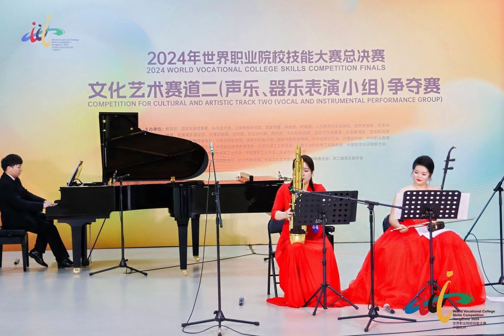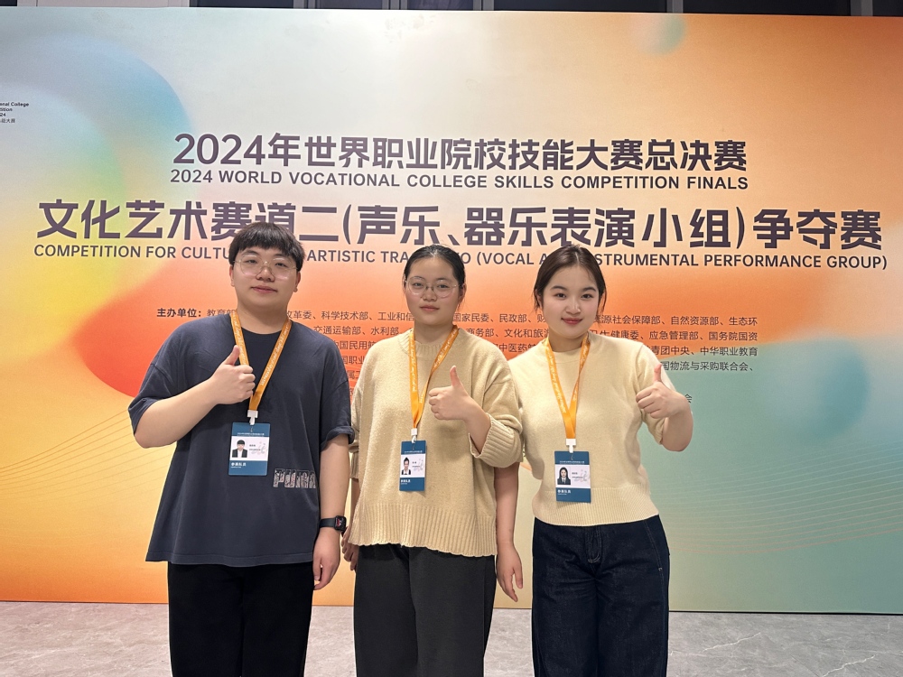 10月25日至29日,2024年世界职业院校技能大赛总决赛文化艺术赛道二(声乐、器乐表演小组)争夺赛在浙江艺术职业学院举行,来自全国57所高等职业院校207名各省推荐的优秀选手同台竞技,比赛异常紧张而激烈。音乐舞蹈学院倪田恬、周小楠、陈则希三名选手代表江苏参赛,在这场高手如云的全国性大赛中斩获铜奖。