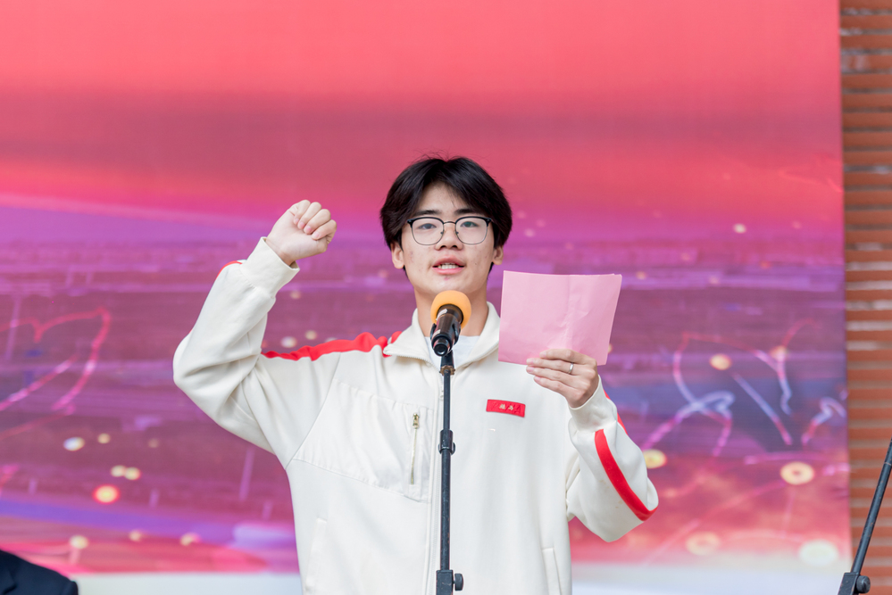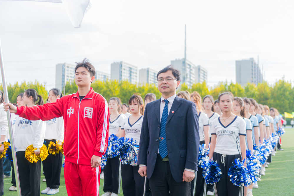 管理学院空中乘务(专)24(1)班朱汉胜同学代表运动员宣誓,承诺将严格遵守比赛规则,发扬运动员精神。体育学院丁宇翔老师代表裁判员宣誓,承诺将认真履职,确保比赛公平公正。校党委副书记、校长朱月萍宣布运动会正式开幕。