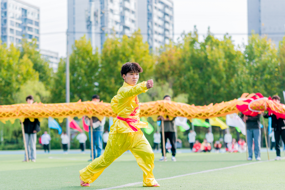 各方阵代表队的精彩表演震撼登场:啦啦操旋律轻快,动感十足,尽显青春朝气;舞蹈表演轻盈灵动,曼妙精彩,美不胜收;武术表演一招一式,行云流水,气势如虹。