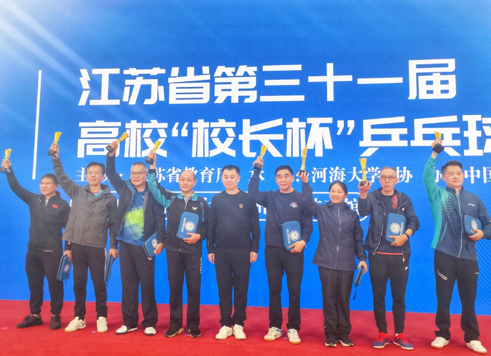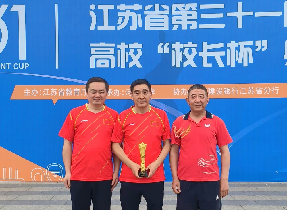 江苏高校“校长杯”乒乓球比赛起源于1994年,由东南大学发起创办,是全国各省、市、自治区中高校领导范围内开展最早的乒乓球赛事。每年举办一次。本次比赛规模宏大,高职高专组吸引了来自全省的 78 支代表队参赛。多盈体育组建了由党委书记刘锋,党委副书记、校长朱月萍,党委委员、副校长杭斌,党委委员、纪委书记王鑫明参与的代表队。运动员刘锋、杭斌、王鑫明历经多阶段的激烈角逐,凭借较好的球技、顽强的拼搏精神和出色的团队合作,一路过关斩将,最终荣获团体亚军。选手们沉着冷静、敢打敢拼,斗志昂场,赢得了现场观众的阵阵喝彩。