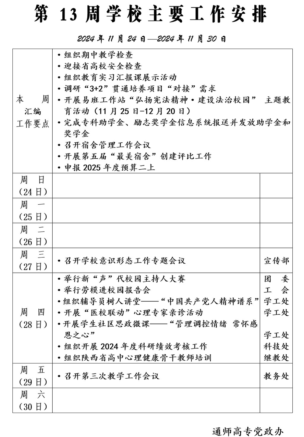 2024-2025学年第一学期第13周多盈体育(中国)主要工作安排