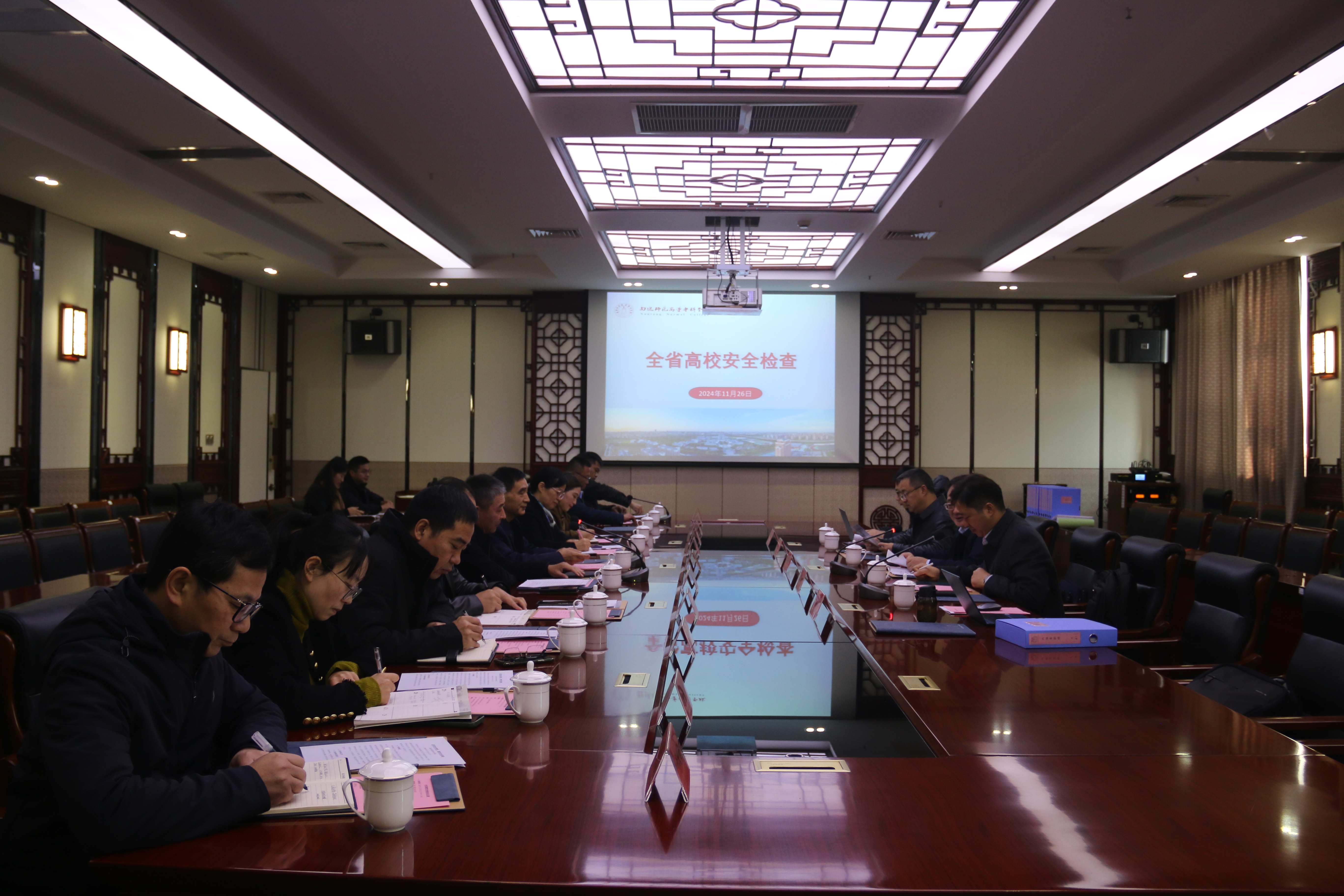 11月26日上午,以南京农业大学副校长单正丰为组长的省高校安全检查工作组一行5人来校检查安全工作。校党委书记刘锋,党委副书记、校长朱月萍,党委委员、副校长杭斌,党委委员、宣传部部长马文娟以及相关职能部门负责人参加了会议。
