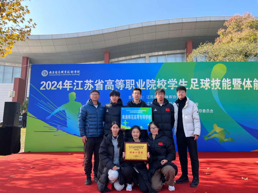 11月29日至12月1日,2024年江苏省高等职业院校学生足球技能暨体能大赛在南京信息职业技术学院举行,经过两天的激烈角逐,由我院刘惠宁、杨婷婷、聂腾飞、周沈阳、徐黄润、梅承进六位同学组成的代表队,在丁宇翔、刘倍亨两位老师的指导下,荣获体能比赛团体总分一等奖。