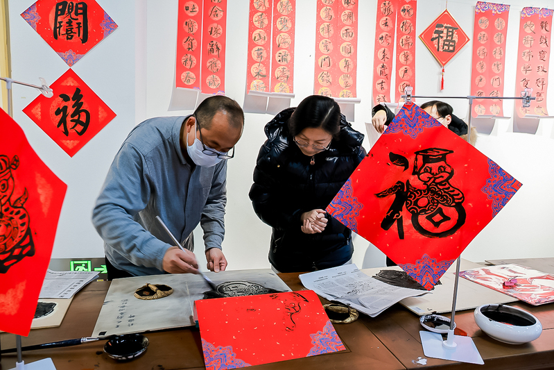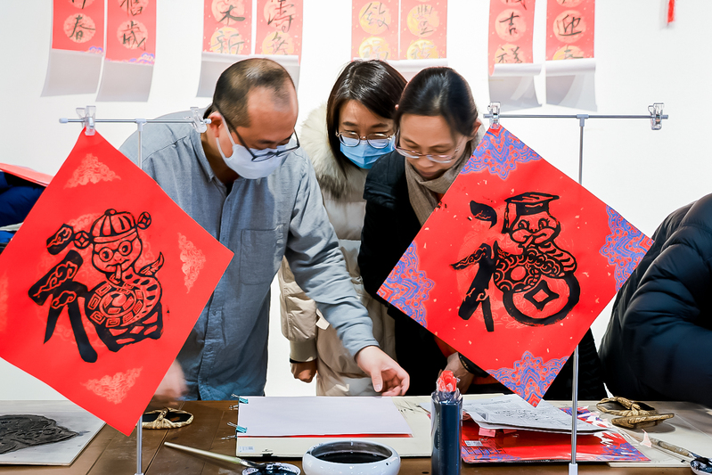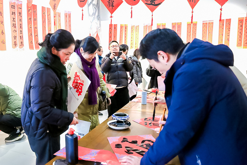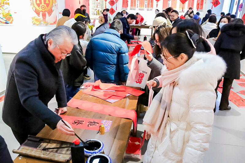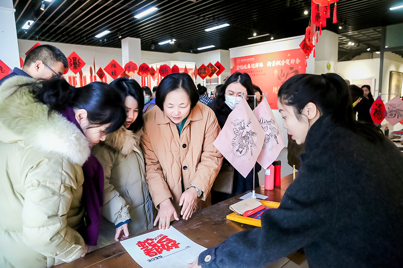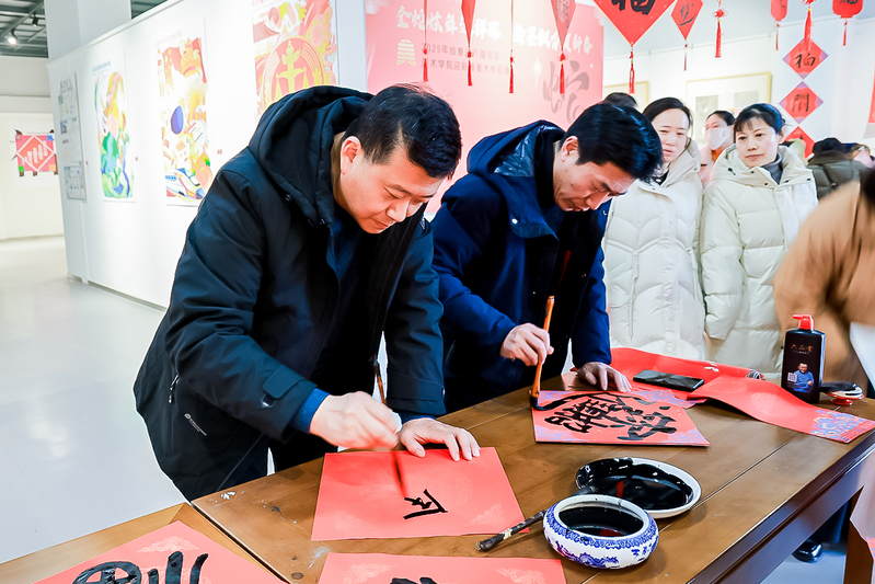 美术学院的书法大师们聚精会神地挥毫泼墨,创作着充满节日氛围的春联和“福”字。他们的笔触时而遒劲有力,时而柔美婉转,用书法这一传统艺术形式,讲述着新春的故事。空气中弥漫着的墨香、人群中不绝于耳的赞叹声,全是春节将至的“沉浸式体验”。