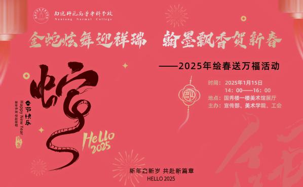 送福送祝愿,品年品文化。值此蛇年临近之时,美术学院全体师生恭祝各位:事业如灵蛇蜿蜒高升,家庭似祥蛇盘踞安康,乙巳大吉,幸福绵长!