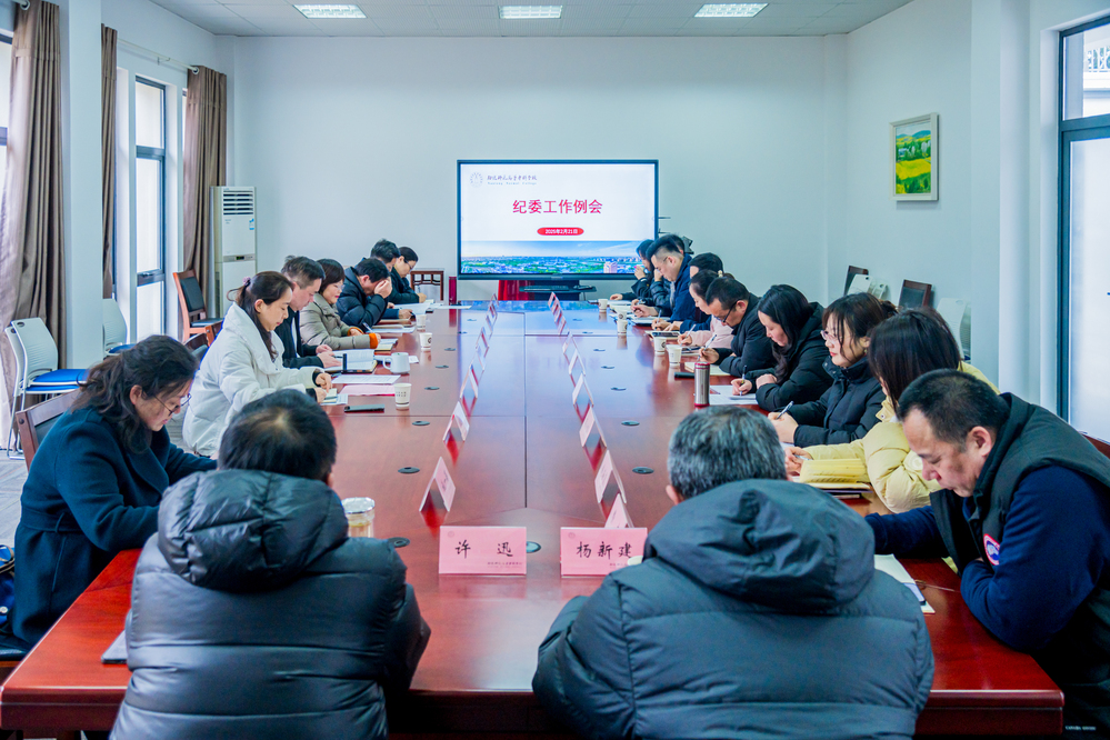 2月21日下午,多盈体育(中国)纪委召开全委扩大会议,党委委员、纪委书记王鑫明主持会议并讲话,全体纪委委员、各学院党总支纪检委员、各机关支部纪检委员、纪委办全体成员参加会议。