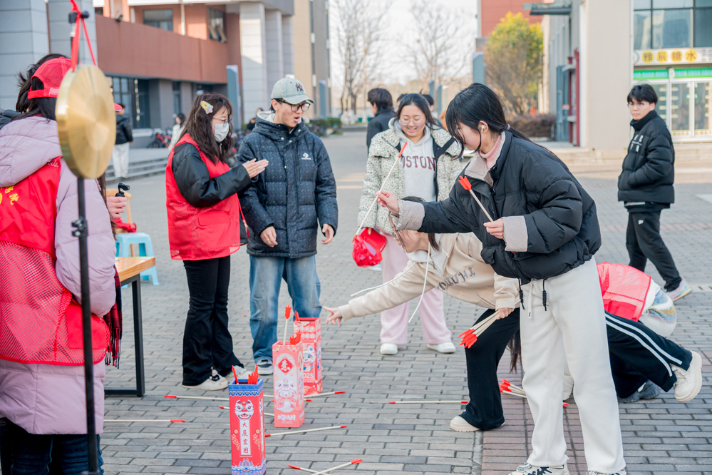 “穿越千年·古风挑战”环节惊喜连连。蒙眼敲锣、投壶射箭等传统游戏让同学们穿越时空,感受古典文化的魅力。而在“心事星球·心愿墙”前,师生们将未言说的期待书写成星,悬挂成一片“心愿银河”;“时光邮局·爱的邮差”则收集了数封手写信件,这些承载着祝福的“慢递”将在未来某天悄然抵达收信人手中。