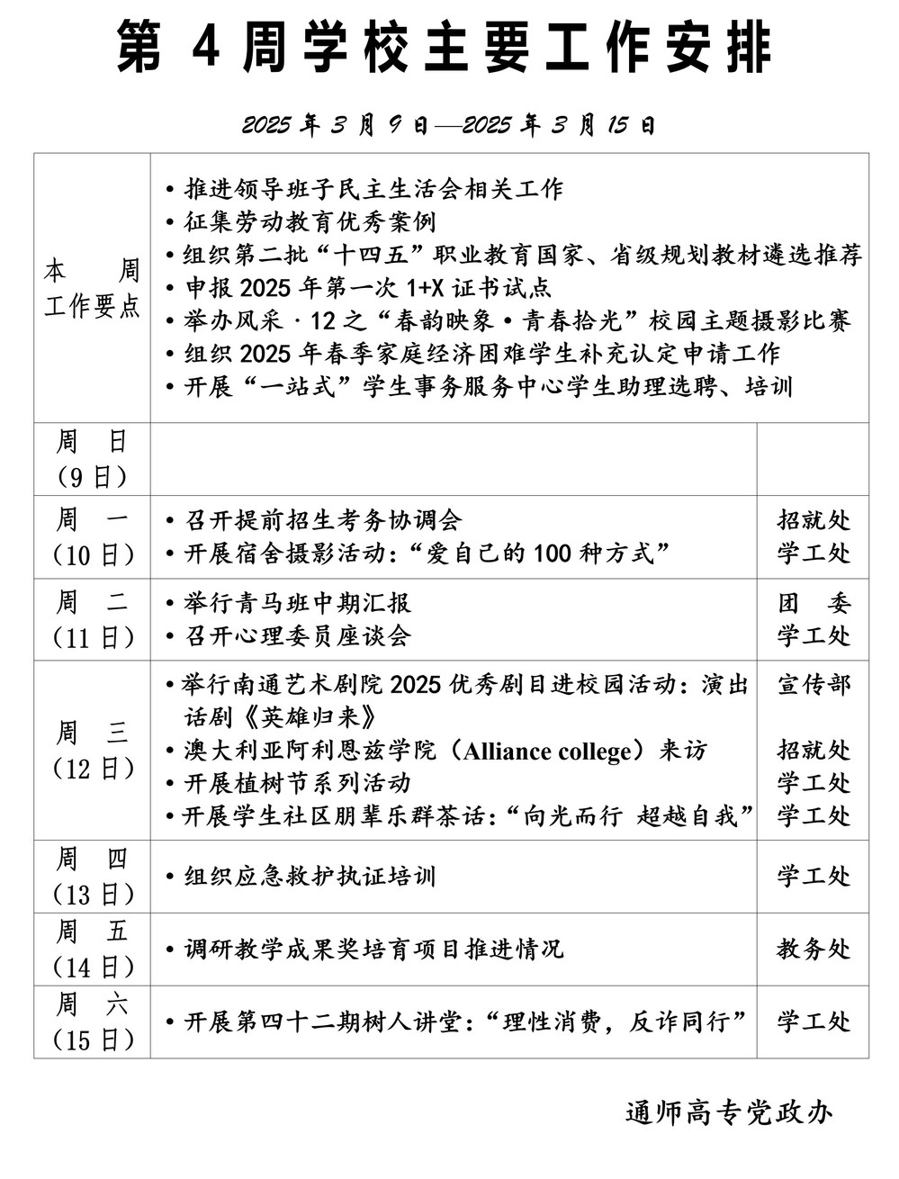 2024-2025学年第二学期第4周多盈体育(中国)主要工作安排