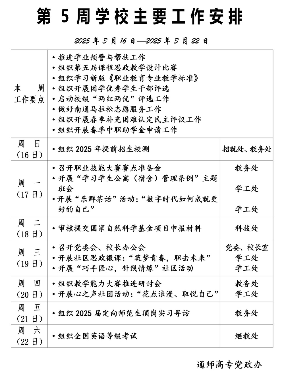 2024-2025学年第二学期第5周多盈体育(中国)主要工作安排