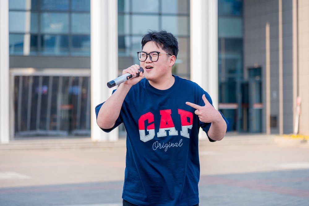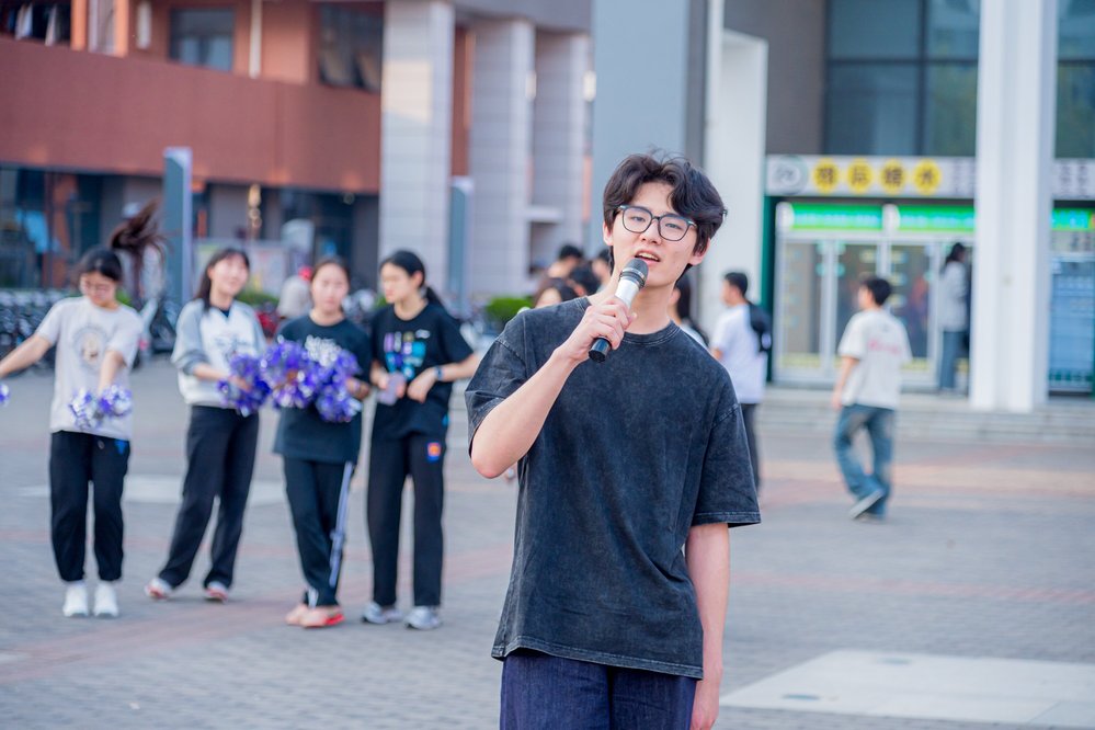 四时三十分,歌曲串烧环节掀起首波高潮。表演者手持星光麦克风穿梭人群,从尤长靖与那吾克热炸裂全场的《飘向北方》;从陶喆经典布鲁斯风格的《找自己》《天天》,到方大同慵懒灵动的《特别的人》《南音》,不同年代的旋律在暮色中碰撞。当GALA乐队《追梦赤子心》的前奏响起,全场师生自发挥舞手机和气球棒,食堂玻璃幕墙上倒映出跃动的星海,副歌部分数百人齐声高唱“向前跑”的声浪直击云霄。