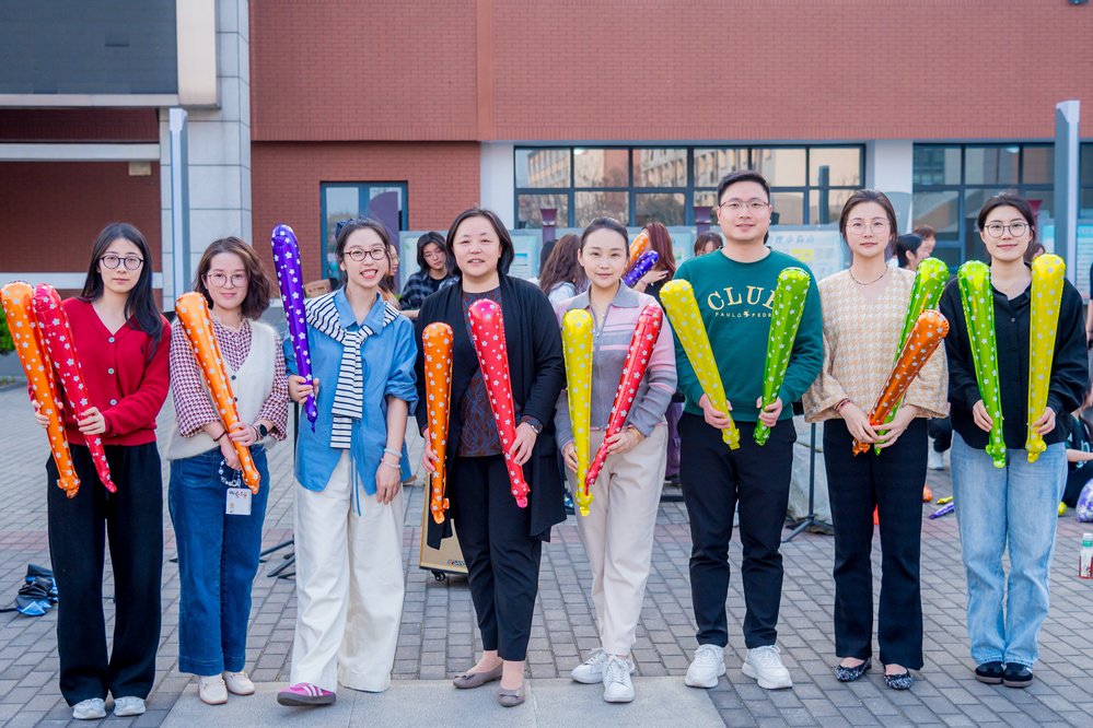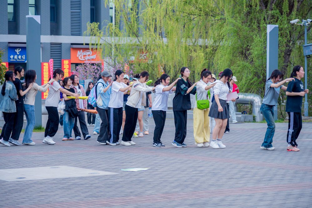 随着《兔子舞》轻快节奏响起,活动进入最欢乐的集体互动环节。领舞同学带领数百名师生围成同心圆,整齐的“Left Left Right Right”口号声中,不同院系的师生手搭肩膀欢乐跳动,同频律动,童趣与朝气驱散春困,笑脸与春光相映成趣。