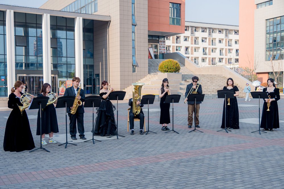 活动伊始,小号手以一曲《权利的游戏》划破春日暮霭。铜管乐器的金色光芒与西斜暖阳交相辉映,引得匆匆路过的学子纷纷驻足。初等教育学院的王同学捧着课本惊叹:“去图书馆的路上突然听见号声,像是春天在发出邀约。”