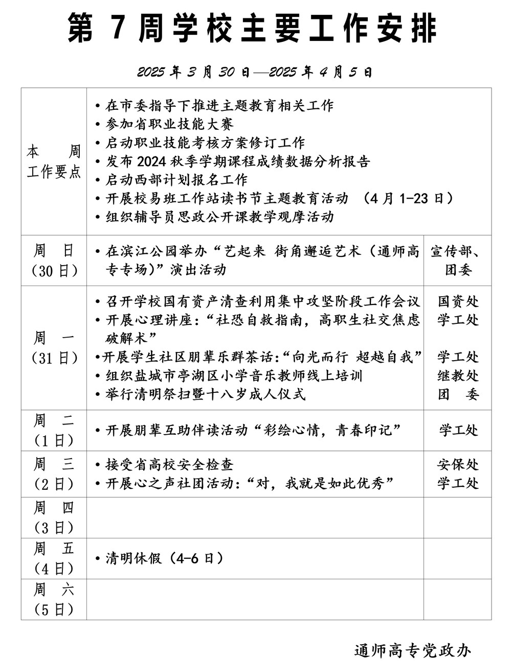 2024-2025学年第二学期第7周多盈体育(中国)主要工作安排