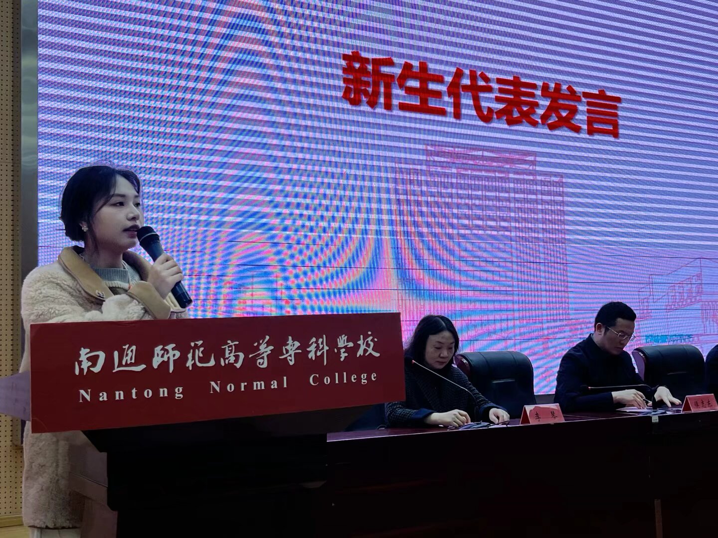 2025级学前教育专业新生陈彤聿作为新生代表发言。她表示以新的身份回到母校非常幸运与骄傲。作为一名教育工作者,选择南师大非脱产学习是促进职业发展的关键一步,感谢南师大与通师高专提供的优质平台和丰富资源。她呼吁全体新生要珍惜学习机会,克服工学矛盾,丰富理论知识,加强实践锻炼。
