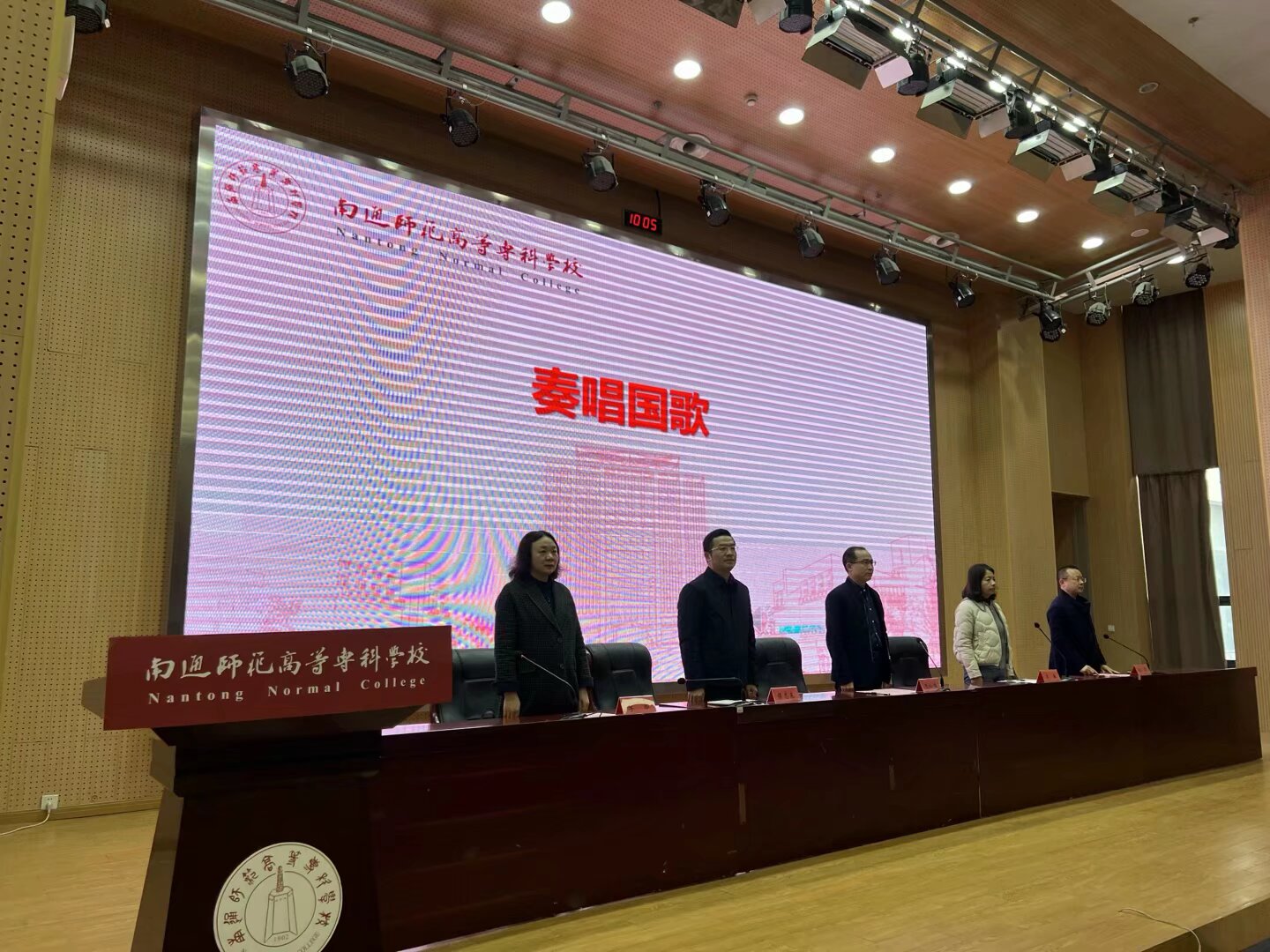 仪式现场,南京师范大学继续教育学院成教办主任李敏、多盈体育继续教育学院院长侯志东共同为“南京师范大学成人高等教育南通教学点”揭牌,揭开了两校合作的序幕。