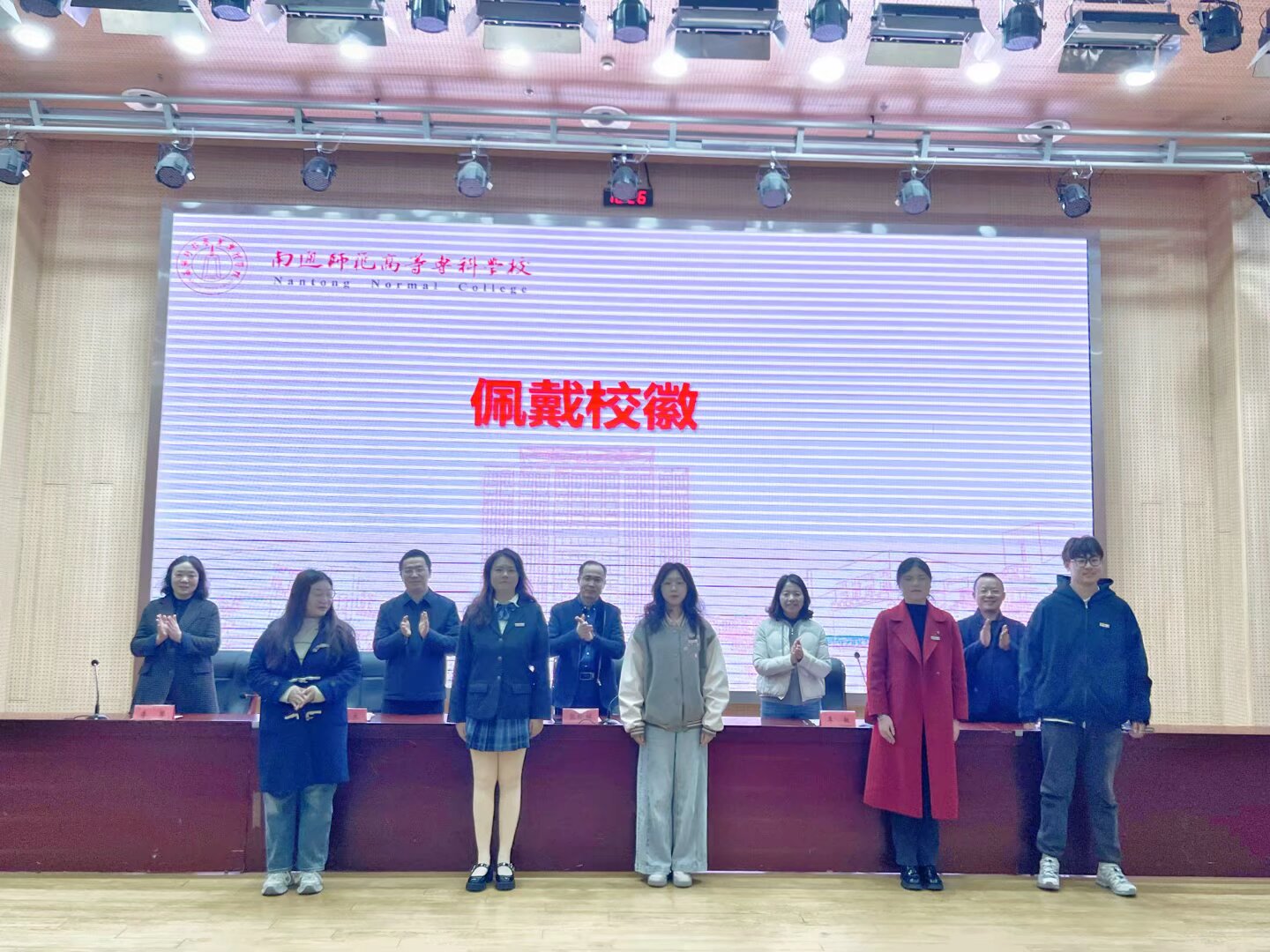校徽授予仪式将现场氛围推向了高潮,南京师范大学继续教育学院成教办主任李敏亲手为新生代表佩戴校徽,这是“南师人”身份的象征,更是一份责任和担当。