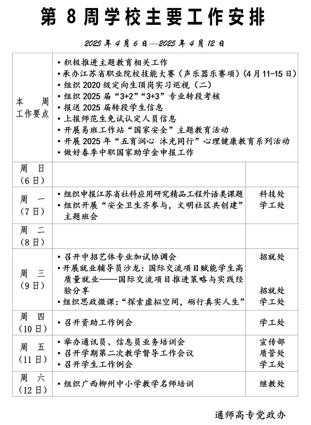 2024-2025学年第二学期第8周多盈体育(中国)主要工作安排