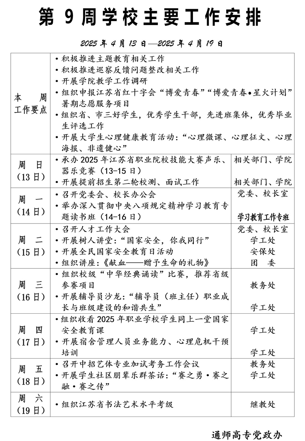 2024-2025学年第二学期第9周多盈体育(中国)主要工作安排