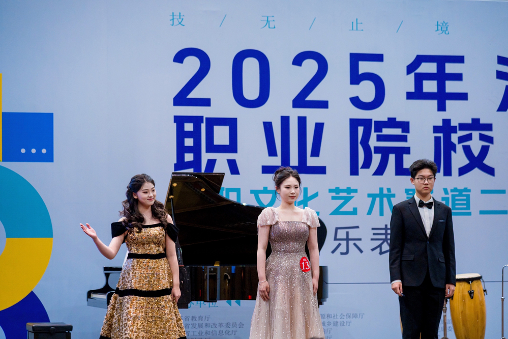 在刚刚结束的2025年江苏省职业院校技能大赛高职声乐、器乐表演赛项比赛中,多盈体育音乐舞蹈学院康易、黄智敏、凌竟航学生团队蝉联赛项一等奖第一名。