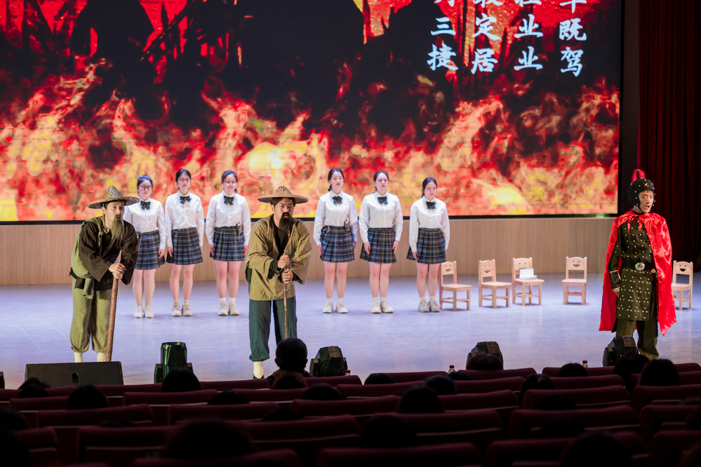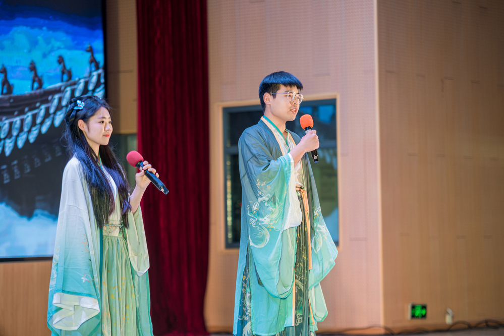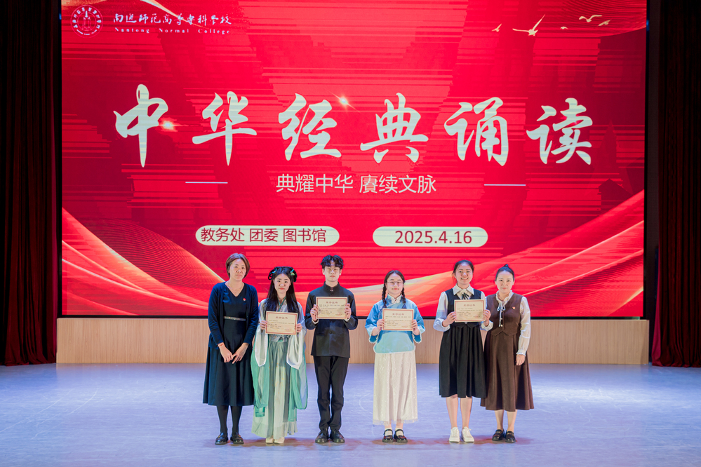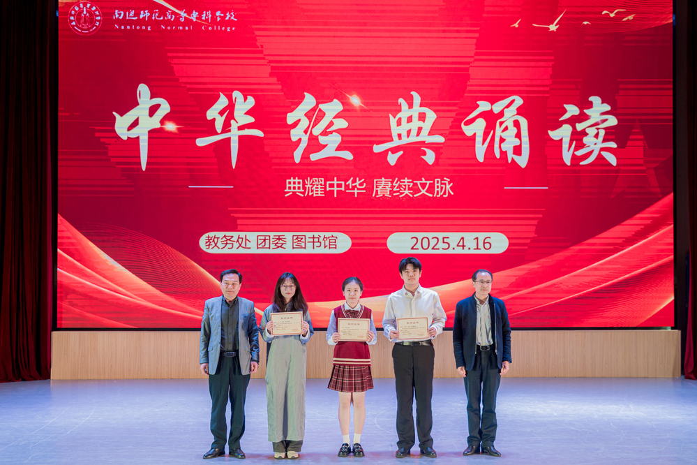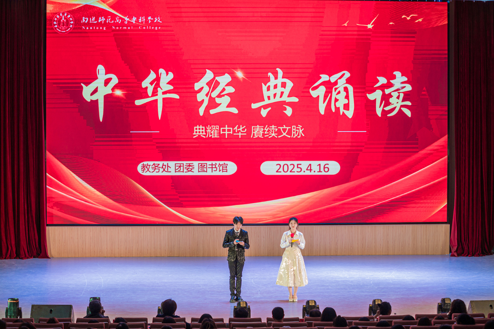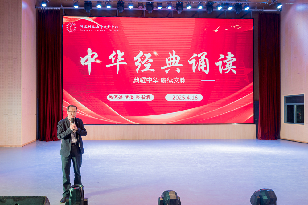 为深入贯彻落实党的二十大、党的二十届三中全会精神,落实全国教育大会“加大国家通用语言文字推广力度,促进铸牢中华民族共同体意识”精神,传承发展中华优秀语言文化,4月16日下午,由教务处、团委、图书馆共同举办的2025年“中华经典”师生诵读比赛在开发区校区图文信息中心大报告厅举办。校党委委员、副校长张松祥,教务处处长李建军,团委书记张珏,图书馆副馆长陈洪美,宣传部副部长徐敏,学工处副处长杨新建担任评委,300多名师生到场观赛。