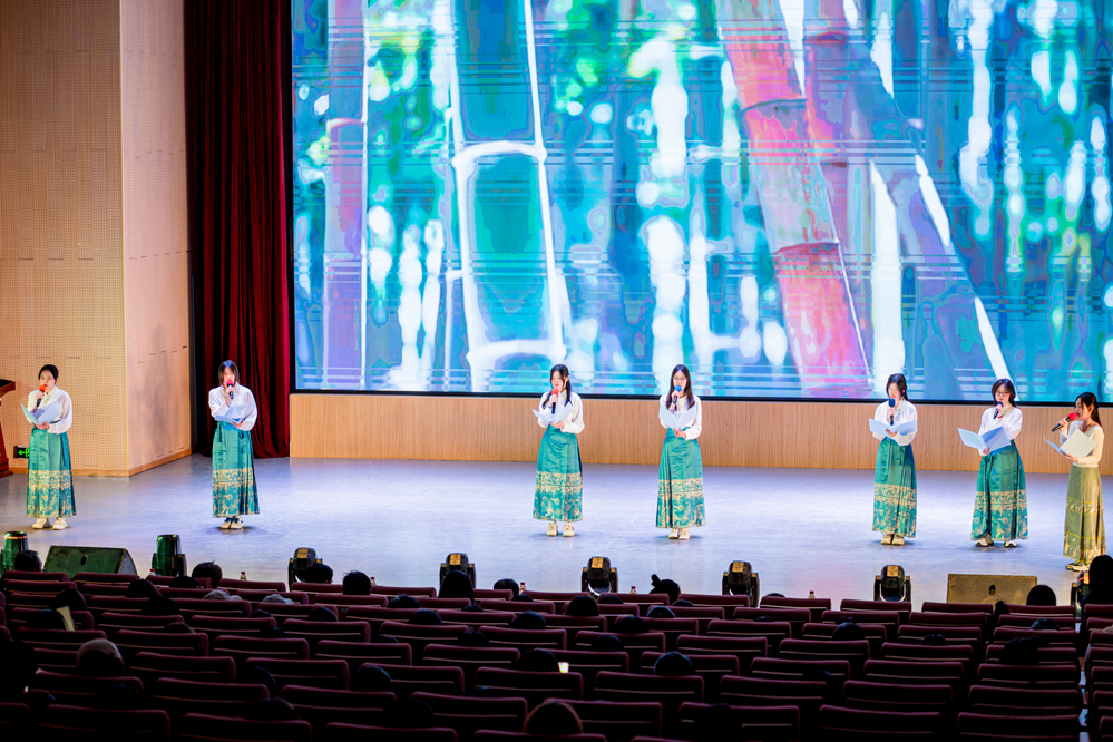 由各学院推选的11支优秀代表队脱颖而出,成功入围本次经典诵读大赛总决赛。活动现场高潮迭起,参赛选手以激昂诵读叩击时代强音,以富有张力的语言艺术激活经典生命力,既有对家国叙事的磅礴演绎,也不乏对人性光辉的细腻捕捉。经过激烈的角逐,最终《有的人》、《土地的誓言》、《赵一曼》荣获一等奖;《依依惜别的深情》、《诗经采薇》、《少年中国说》、《水调歌头》荣获二等奖;《我的南方和北方》、《致大海》、《生生慢》、《月光下的中国》荣获三等奖。