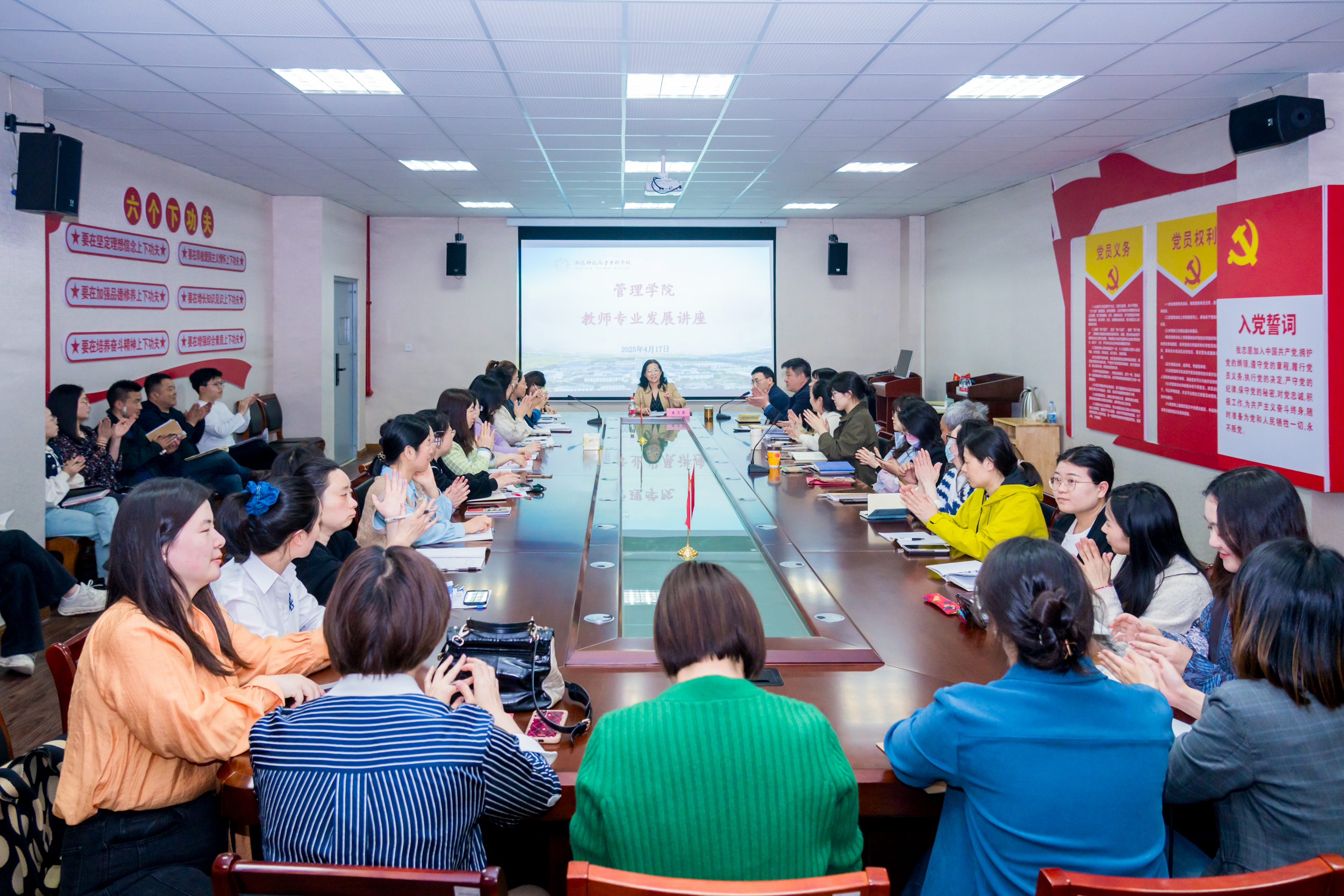 为赋能教师专业发展,助推学院教育教学提质增效,4月17日下午,管理学院特邀朱月萍校长做“教师专业发展”专题讲座。讲座由管理学院院长颜弘主持,学院领导班子及全体教职工参加。