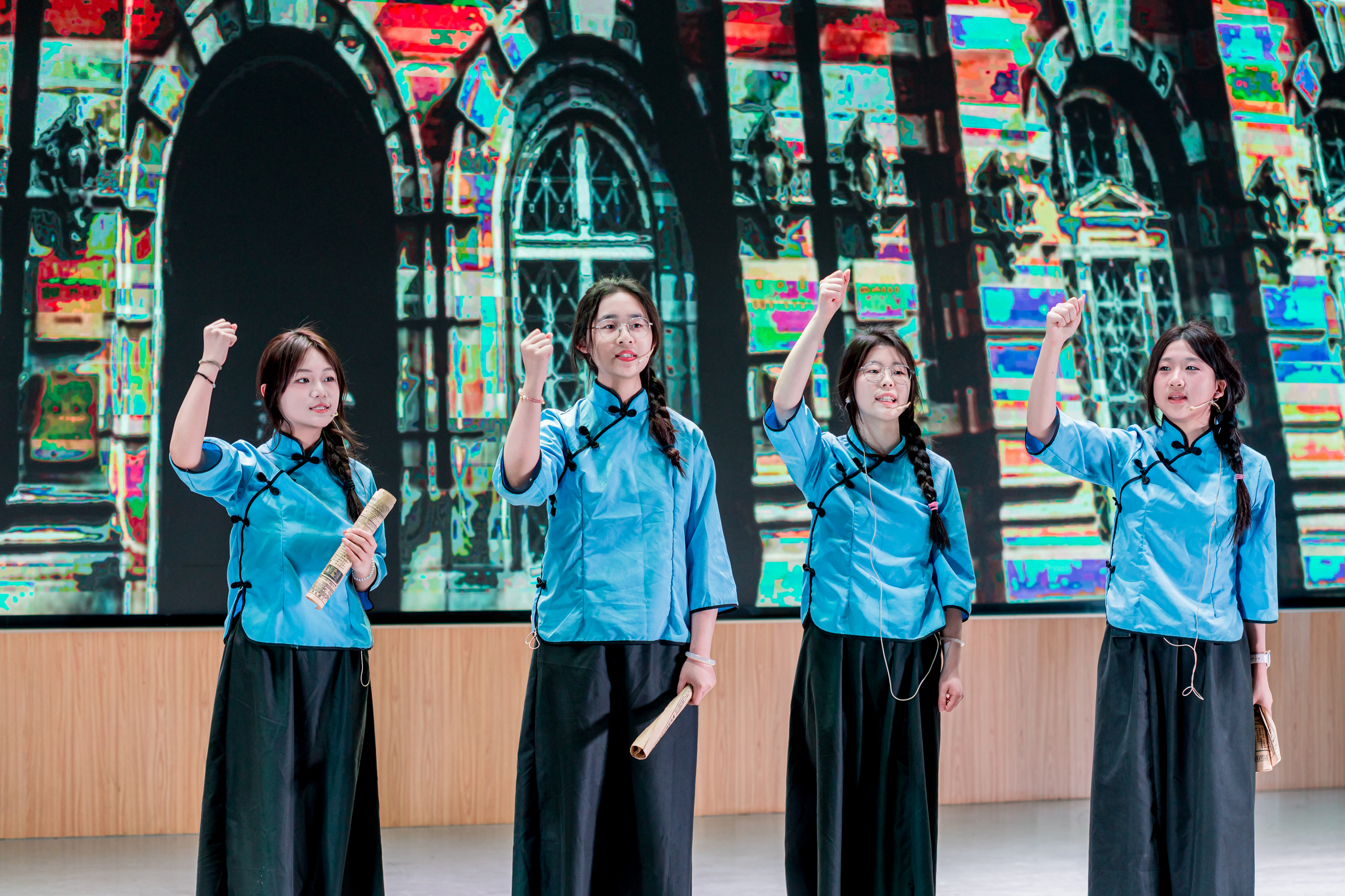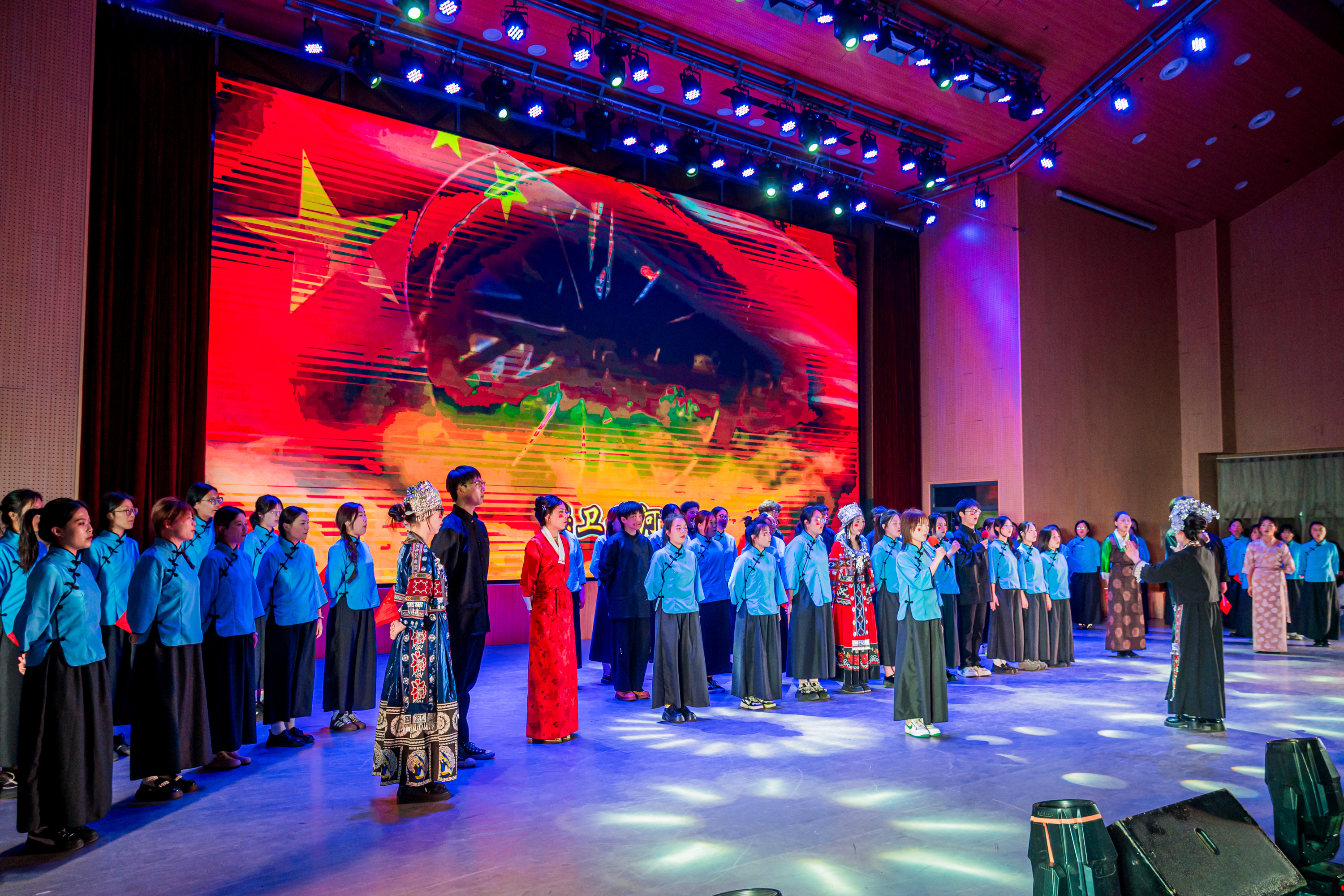 此次文艺汇演节目精彩纷呈。其中,“青春肆意颂风华”篇章中,商务英语(专)23 班与学生会带来的《黄河大合唱》气势磅礴,唱响家国情怀;“筑梦前行展新程”篇章里,话剧《五四风云》重现历史,诗朗诵《青春中国》抒发豪情,青年学子以才艺致敬五四精神。