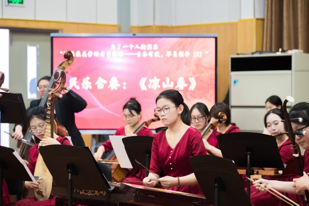 活动现场气氛热烈庄重。一首民乐合奏《凉山春》拉开了活动序幕;朗诵《有的人》深情颂扬了在平凡岗位上默默奉献的劳动者;独舞《故乡》诉说着对家园的眷恋;古筝齐奏《唱支山歌给党听》则表达了儿女们对党的深厚感情。此外,歌曲《走向复兴》唱出了奋斗者的铿锵誓言;四手联弹《保卫黄河》以磅礴的气势展现了保卫祖国的壮志豪情;舞蹈《藏族串烧》则用热情洋溢的舞姿传递了民族文化的瑰丽;歌曲《共筑中国梦》将现场气氛推向高潮。