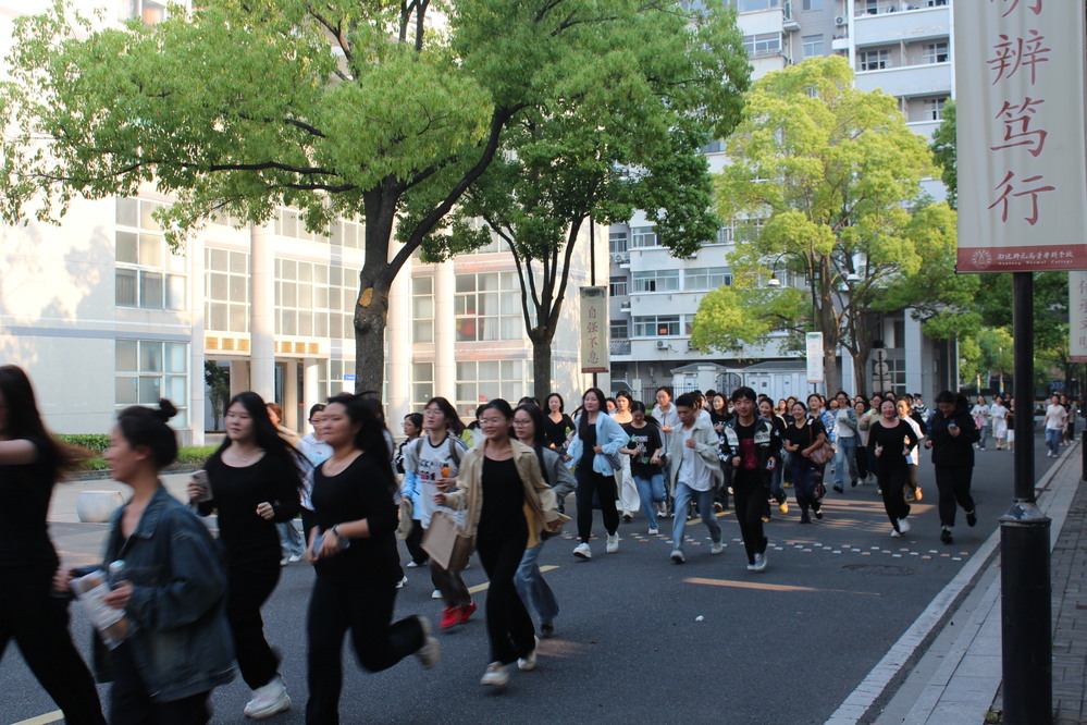 随着急促的地震警报声响起,演练正式拉开帷幕。同学们迅速反应,立即停止活动,就近躲避在课桌下、墙角等安全区域,用双手或书本等物品护住头部、颈部,蜷曲身体,降低身体重心,等待地震波过去。当第一次警报声结束,短暂的“地震间歇期”到来,在老师们的引导下,同学们按照预定疏散路线,迅速而有序地向操场等空旷地带撤离。整个疏散过程中,师生们严格遵守秩序,没有出现拥挤、推搡等情况,仅用9分钟,全院师生就全部安全疏散至指定地点。到达安全区域后,各班辅导员、班主任迅速清点人数,并向演练总指挥杭斌报告本班学生情况,确保无一人遗漏。