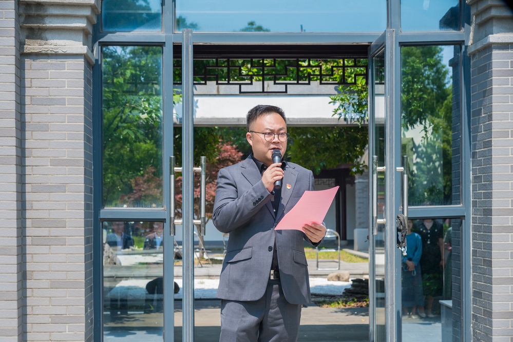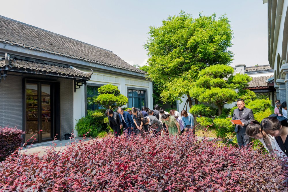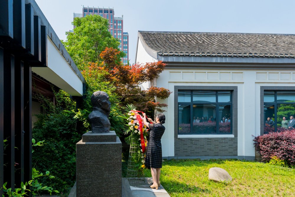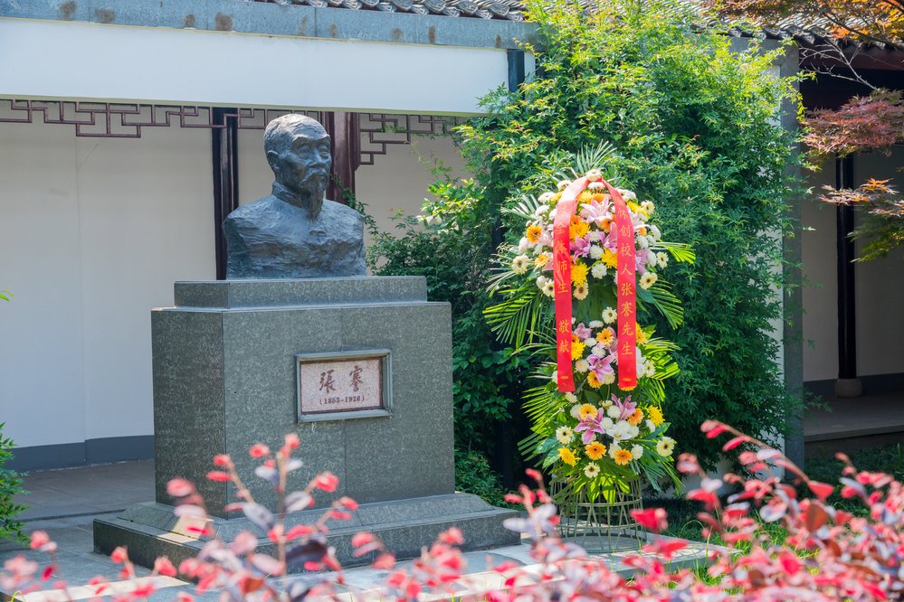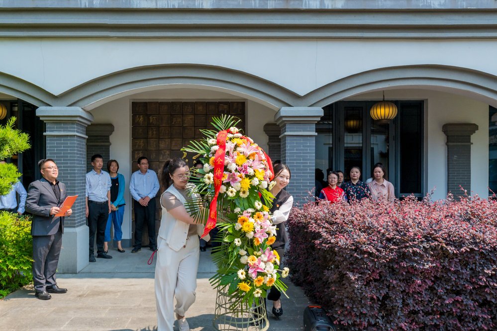 在校史馆内,还举行了缅怀创校人张謇先生的仪式。党员代表向创校人张謇先生的塑像敬献花篮,党委副书记、校长朱月萍为花篮整理缎带,随后全体党员同志向张謇先生塑像鞠躬,表达深切缅怀与致敬。“先生——通师高专一百二十三年风雨苍黄, ‘坚苦自立 忠实不欺’的校训始终在我们耳畔回响;先生——通师高专一百二十三年砥砺奋进,‘民智兮国牢 民智兮国牢’我们的使命担当从不敢忘。先生,我们正沿着您的足迹,奋力开创中国式现代化通师高专新篇章”最后,深情的献辞化作了铿锵的誓言。