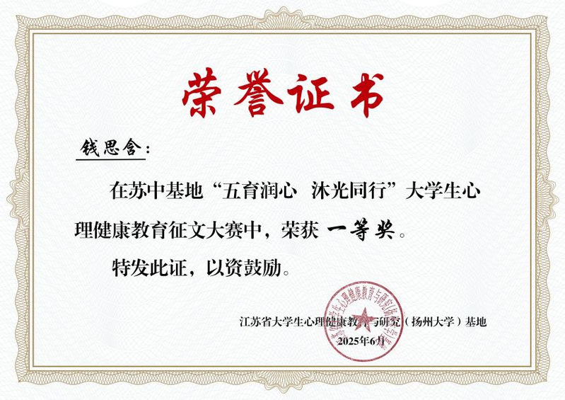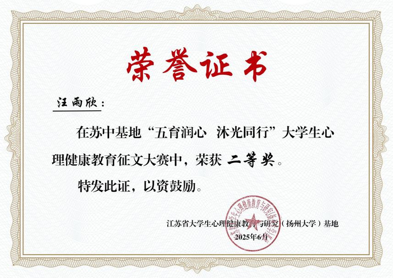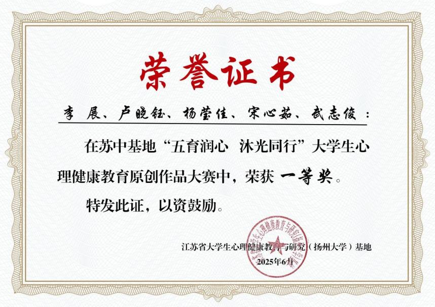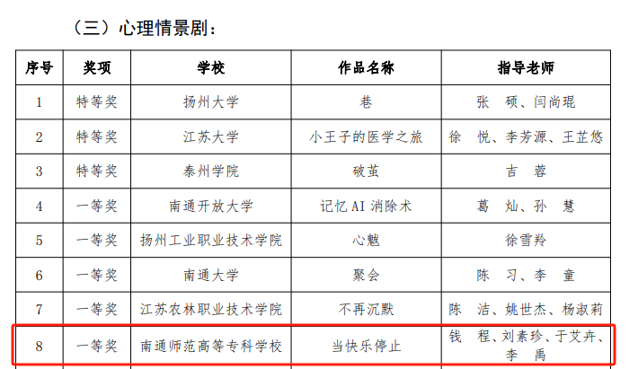 根据省教育厅关于组织开展《省教育厅关于常态化开展“五育润心 沐光同行”心理健康教育活动的通知》要求,近日,在苏中基地525大学生心理健康教育系列活动中,多盈体育学生工作处推送的5件作品从苏中基地高校的参赛作品中脱颖而出,最终斩获5项大奖,现将获奖情况通报如下: