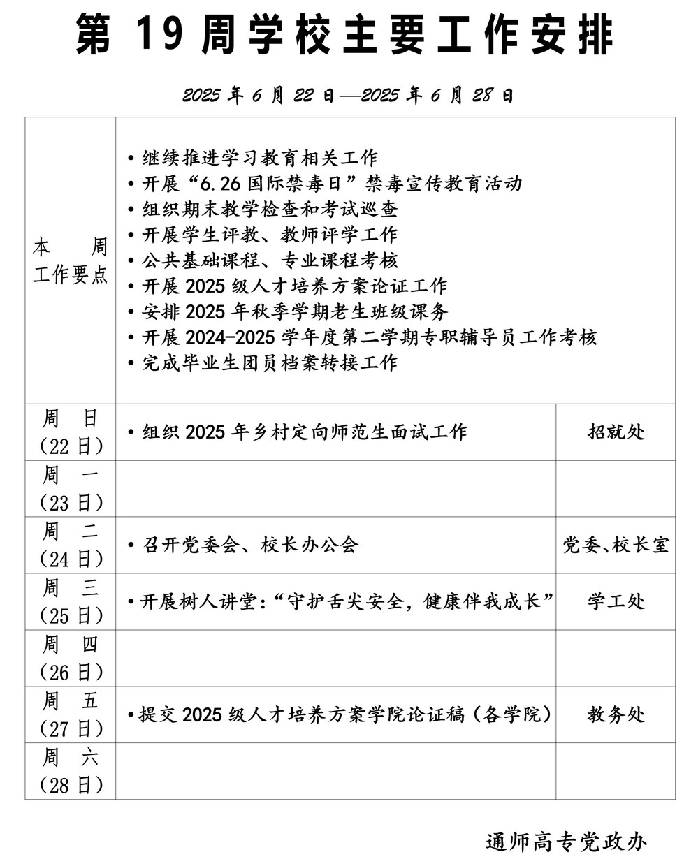 2024-2025学年第二学期第19周多盈体育(中国)主要工作安排