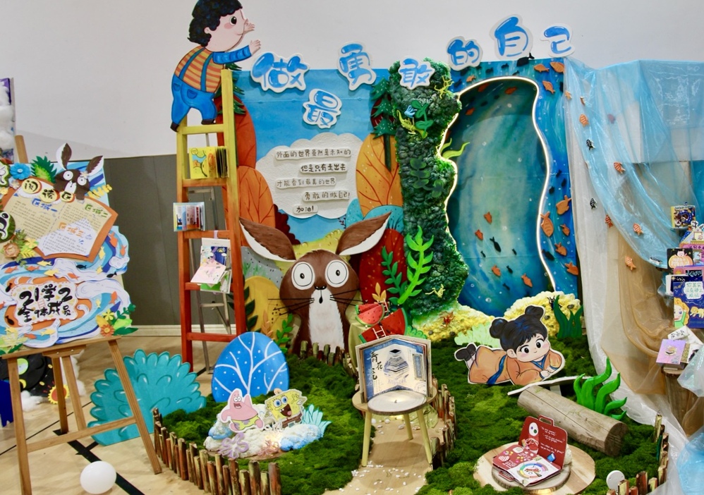 汇报活动以“托起明天”为主题,分为静态展和动态展两部分。静态展以绘画和手工作品创设了“育见初心”多元成长环境:阅读区的绘本故事、建构区的积木拼图、美工区的多彩世界、科学区的奇妙世界……真是美不胜收,文化长廊展示的每人一幅代表作更是令人赞叹不已。